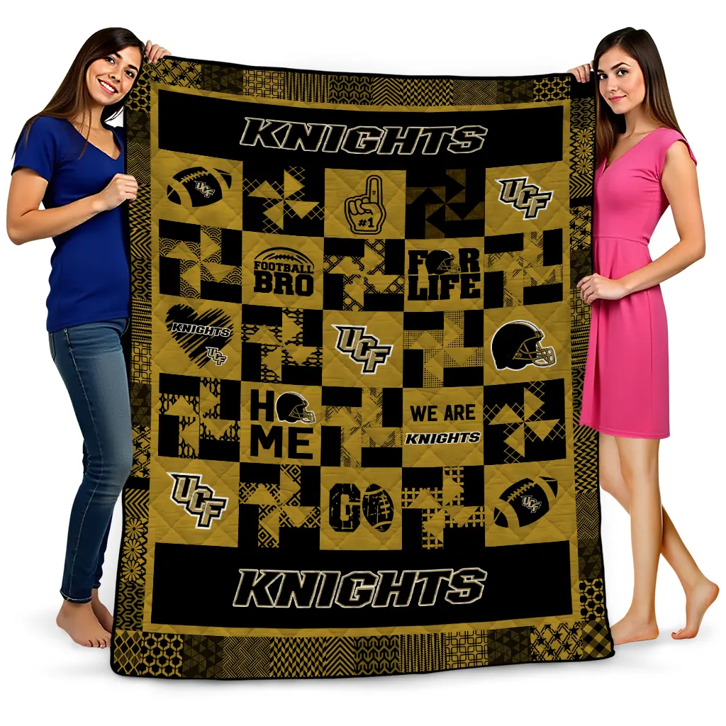 Wrap yourself in warmth and pride with the UCF Knights Helmet Heart Gold Quilt Blanket from the UCF Knights Blankets collection at Yes That Blanket. Made from 100% premium quilting-weight polyester blended with a touch of microfiber, this quilt offers a smooth, soft finish you’ll love. Choose between two quilting styles—Stipple or Diagonal—and enjoy the comfort of a cotton-filled layer inside that adds extra coziness for every season. The border is available in classic black or white, giving your design a clean, timeless edge.