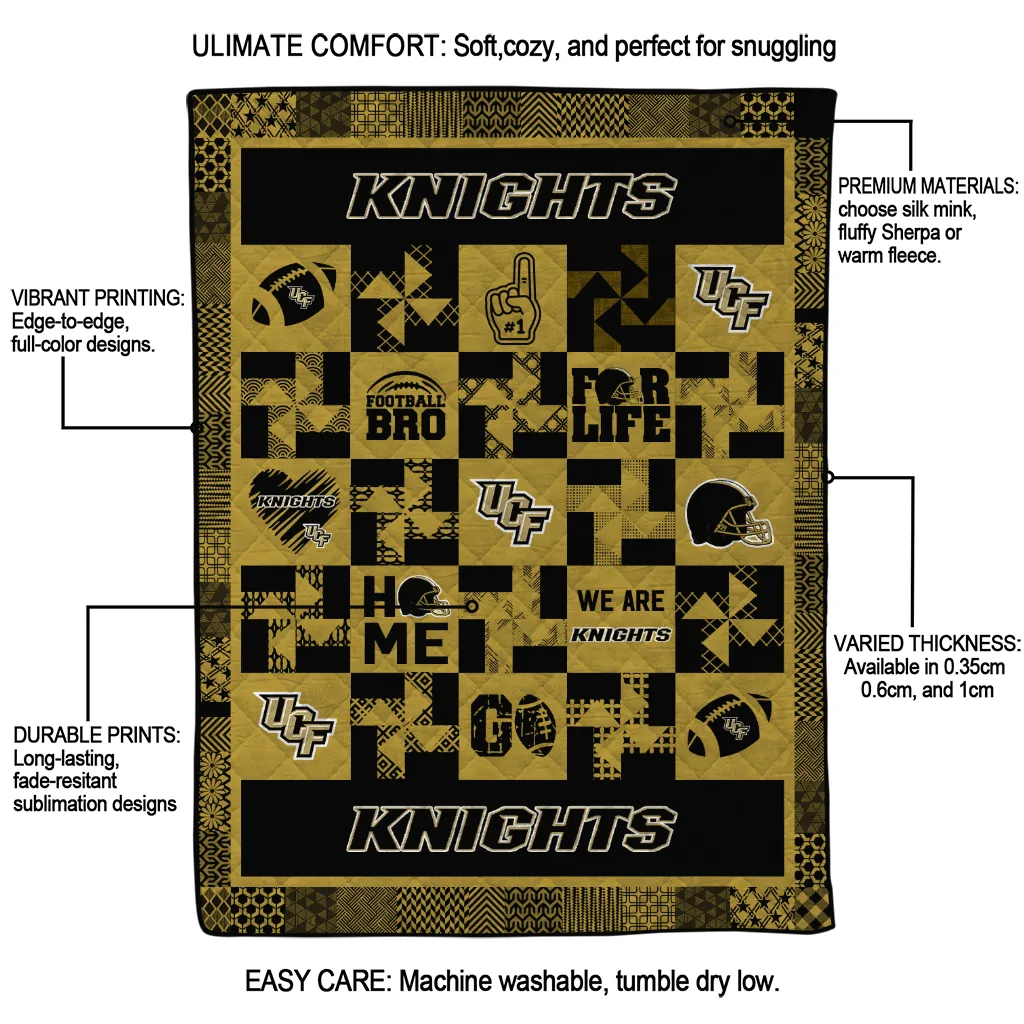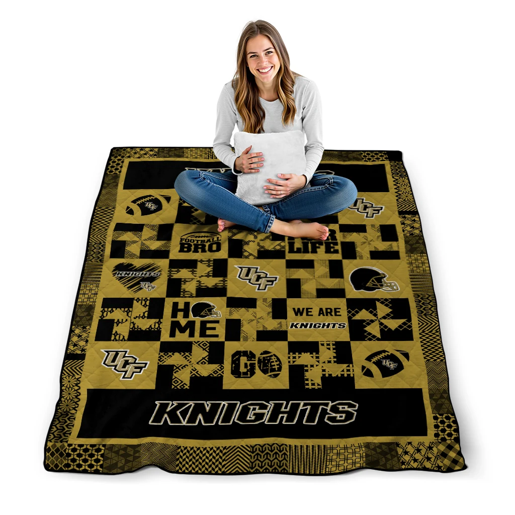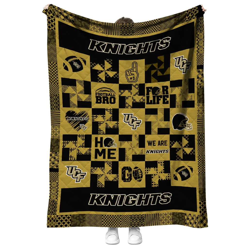 The UCF Knights Helmet Heart Gold Quilt Blanket is more than a blanket—it’s everyday comfort, thoughtfully made. Crafted from premium quilting fabric with a soft microfiber touch, it offers a smooth hand-feel and lasting coziness. Layered quilting with a cotton-filled core provides adaptable warmth across seasons while maintaining a clean, tailored look on your bed or sofa.
