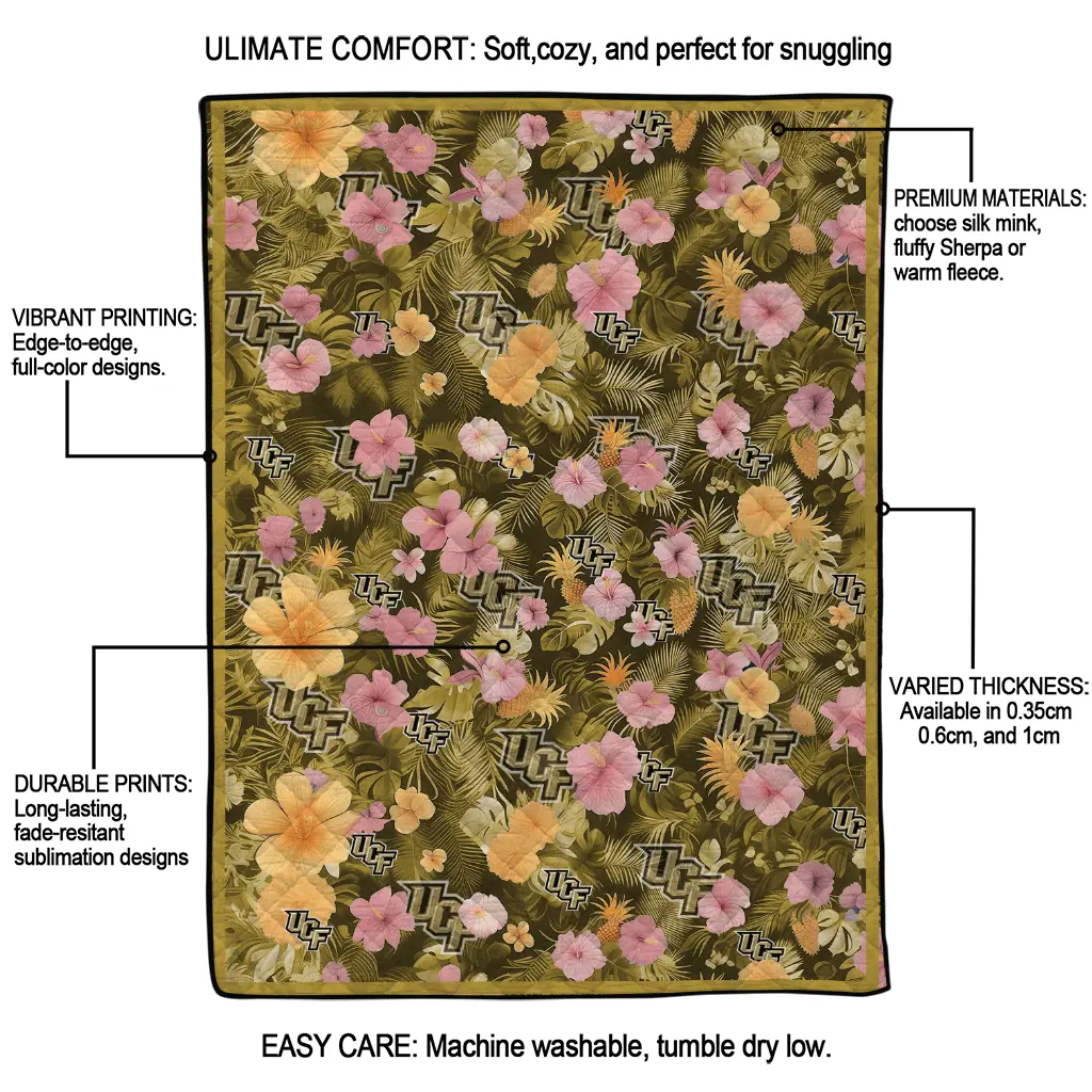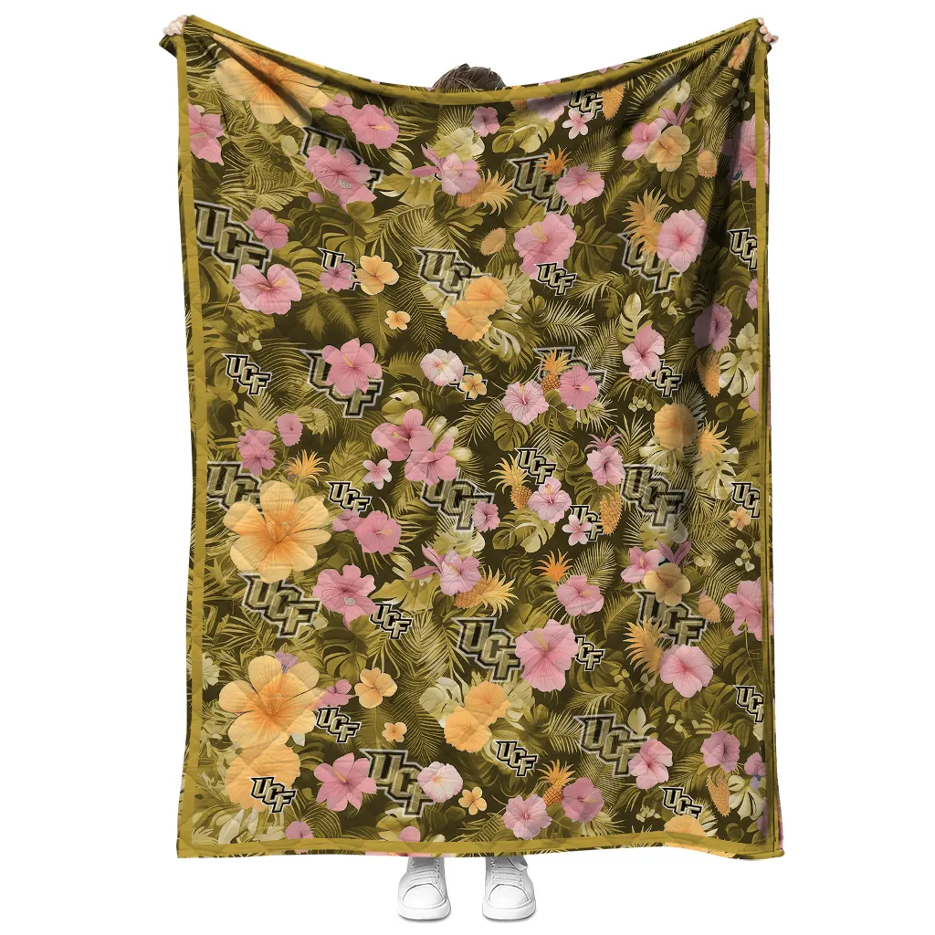 UCF Knights Hibiscus Foliage Gold Quilt Blanket