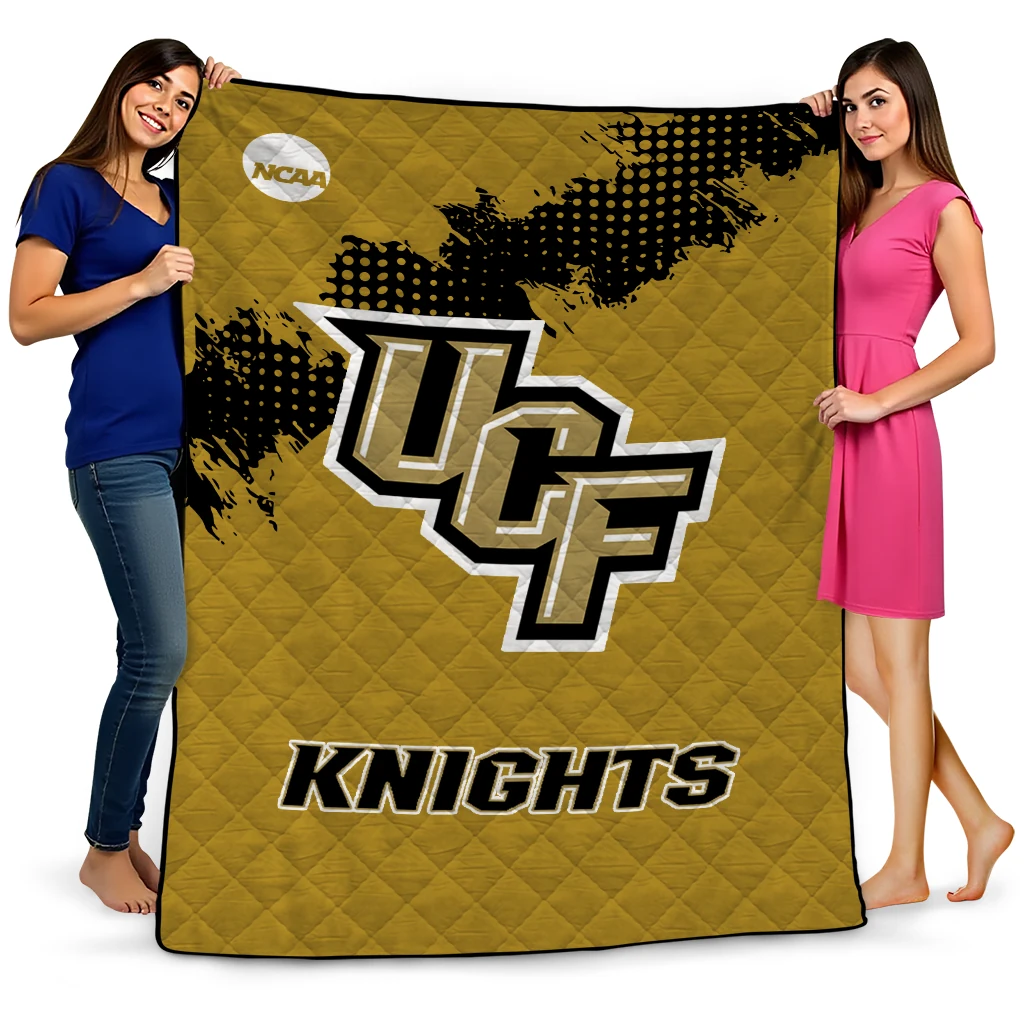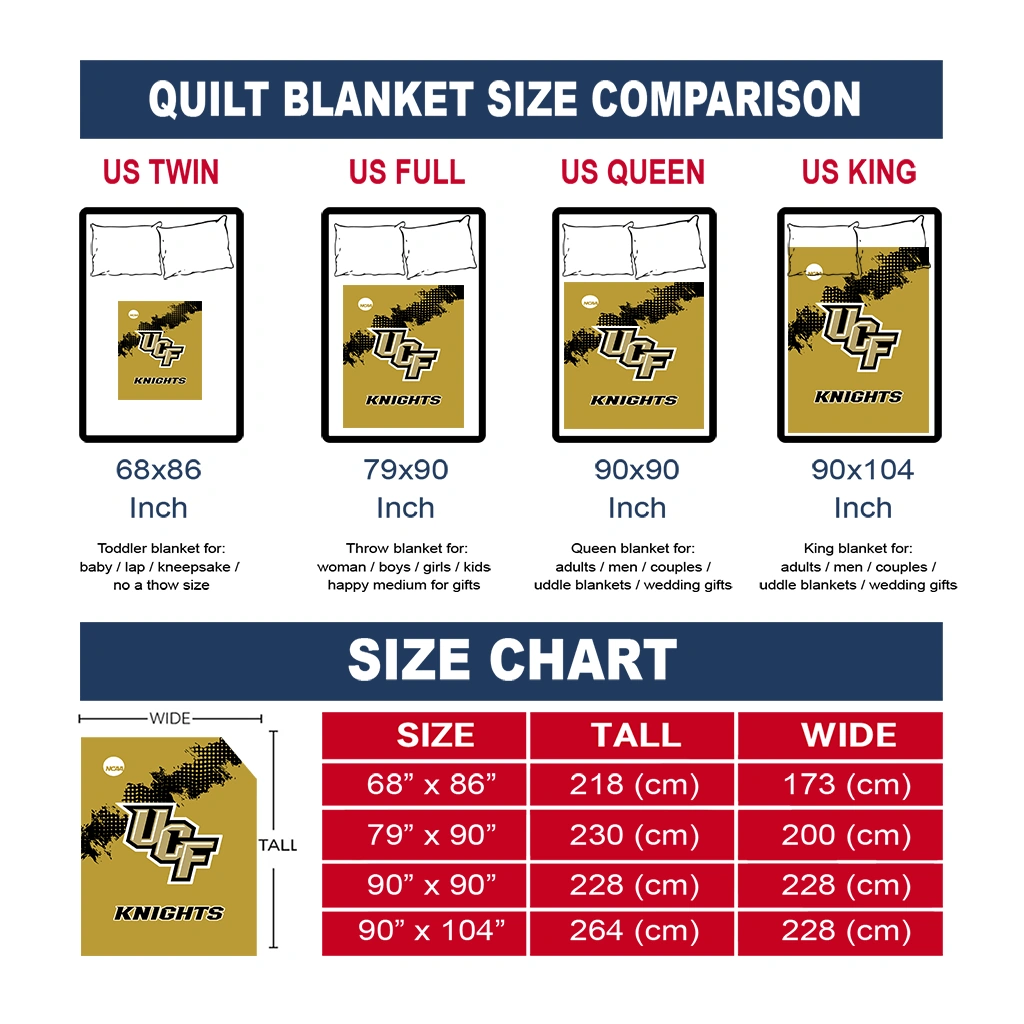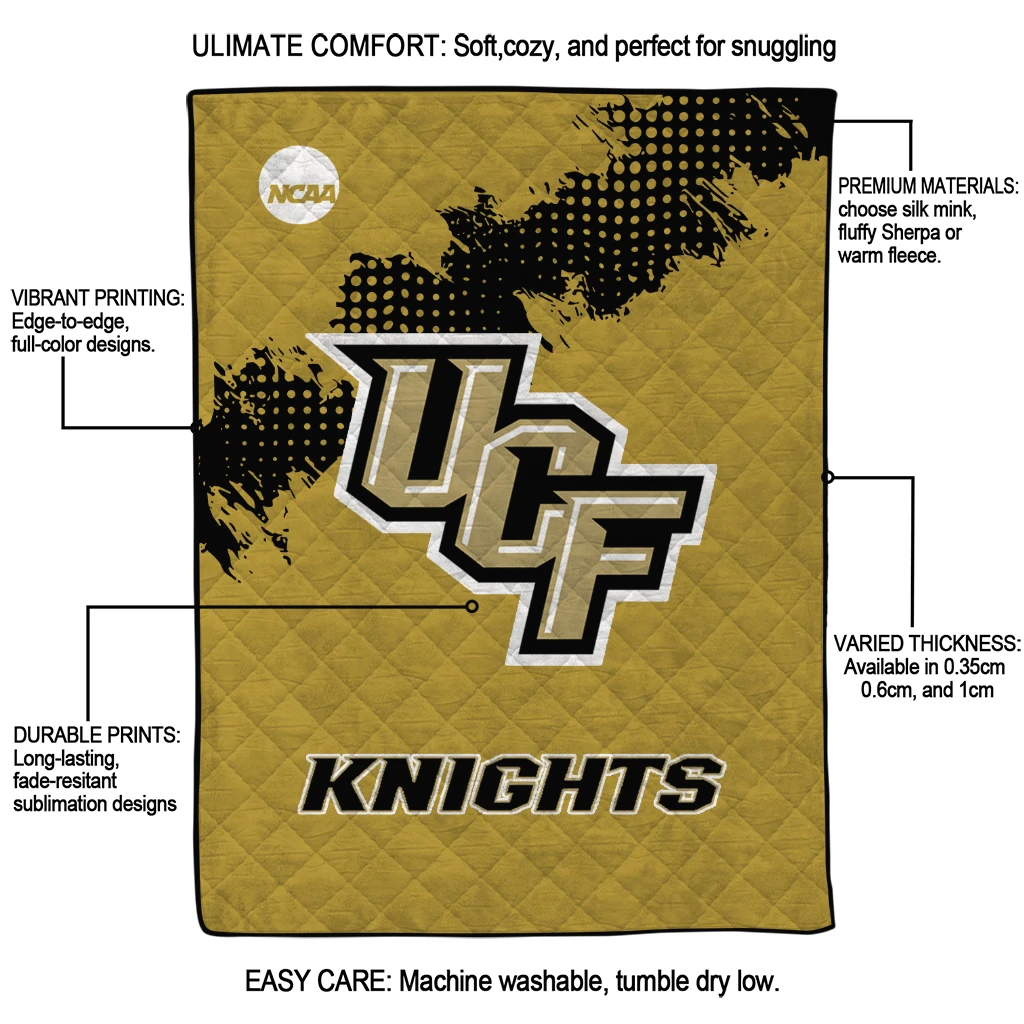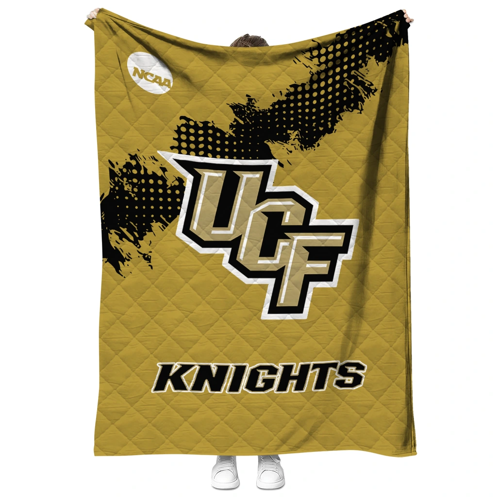 Wrap yourself in warmth and pride with the UCF Knights Paint Trail Gold Quilt Blanket from the UCF Knights Blankets collection at Yes That Blanket. Made from 100% premium quilting-weight polyester blended with a touch of microfiber, this quilt offers a smooth, soft finish you’ll love. Choose between two quilting styles—Stipple or Diagonal—and enjoy the comfort of a cotton-filled layer inside that adds extra coziness for every season. The border is available in classic black or white, giving your design a clean, timeless edge.