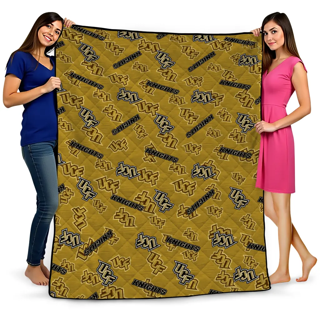 Wrap yourself in warmth and pride with the UCF Knights Solid Classic Gold Quilt Blanket from the UCF Knights Blankets collection at Yes That Blanket. Made from 100% premium quilting-weight polyester blended with a touch of microfiber, this quilt offers a smooth, soft finish you’ll love. Choose between two quilting styles—Stipple or Diagonal—and enjoy the comfort of a cotton-filled layer inside that adds extra coziness for every season. The border is available in classic black or white, giving your design a clean, timeless edge.