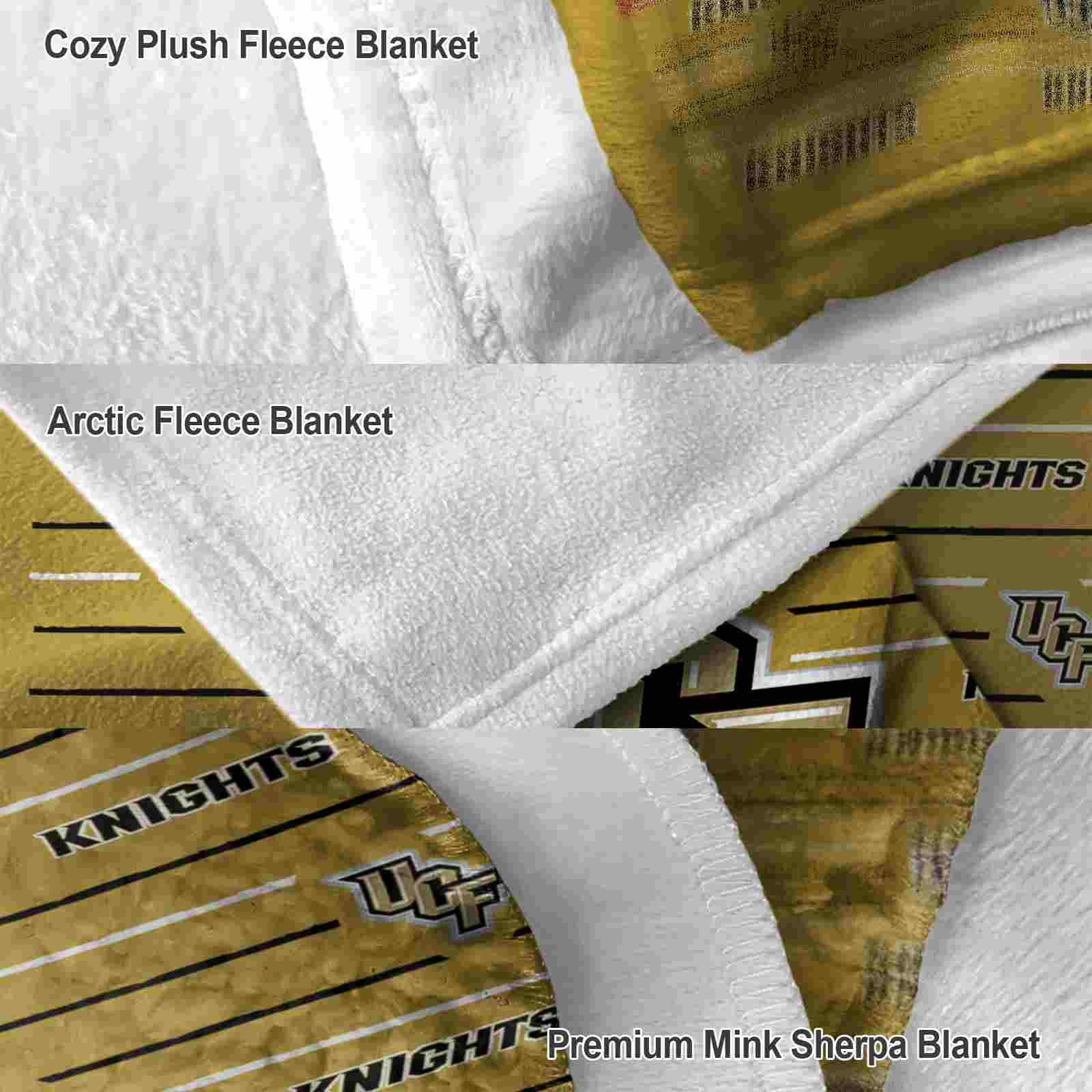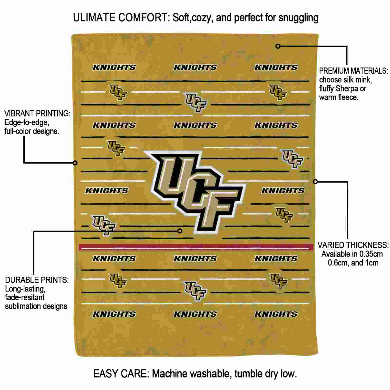 Without a doubt, the UCF Knights Striped Pattern Gold Blanket from UCF Knights Blankets collection is offering true fans a chance to showcase passion in a cool way. Personalize it with your favorite team's logo or a meaningful name to make it uniquely yours. Isn't that great? The full-color print ensures vibrant, edge-to-edge designs, bringing your sports enthusiasm to life!