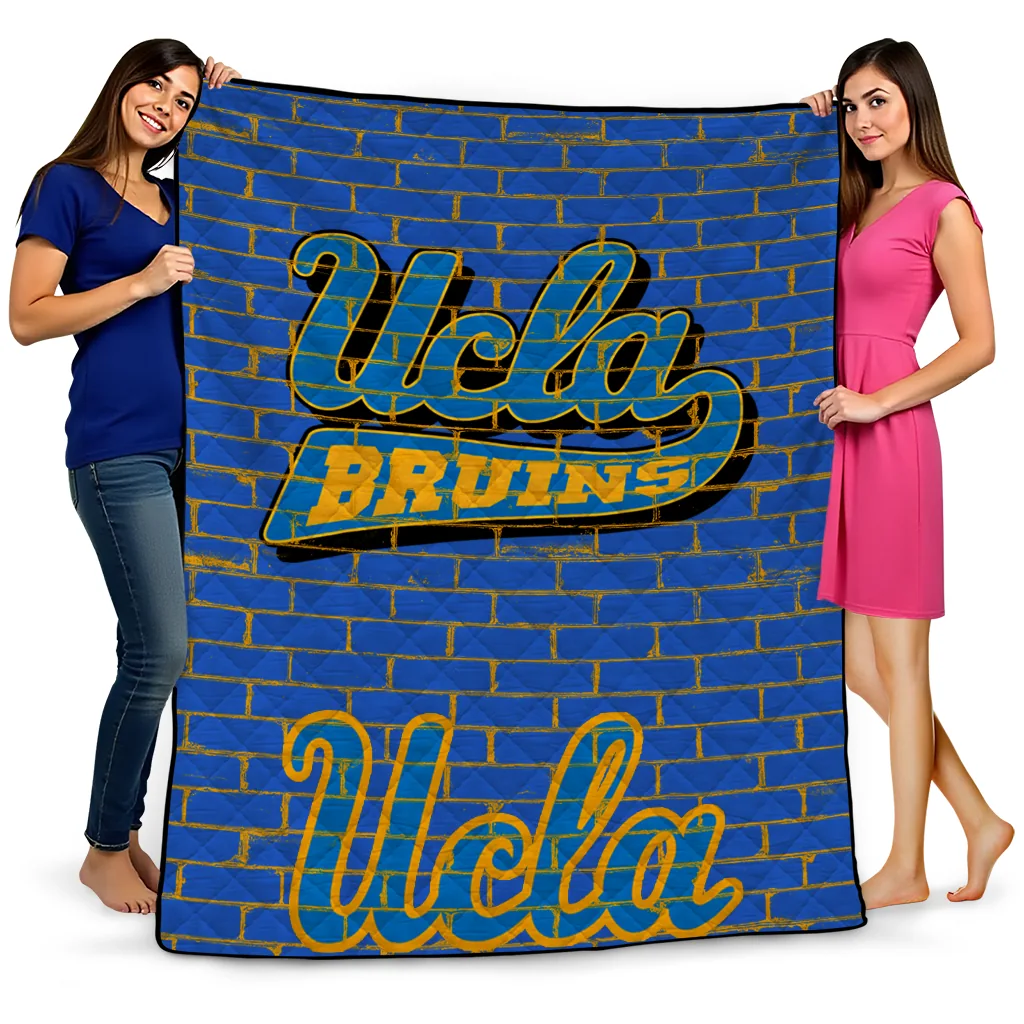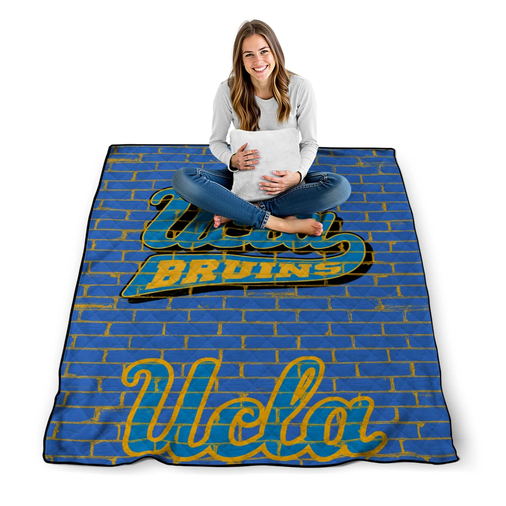 Wrap yourself in warmth and pride with the UCLA Bruins Brick Grid Blue Quilt Blanket from the UCLA Bruins Blankets collection at Yes That Blanket. Made from 100% premium quilting-weight polyester blended with a touch of microfiber, this quilt offers a smooth, soft finish you’ll love. Choose between two quilting styles—Stipple or Diagonal—and enjoy the comfort of a cotton-filled layer inside that adds extra coziness for every season. The border is available in classic black or white, giving your design a clean, timeless edge.