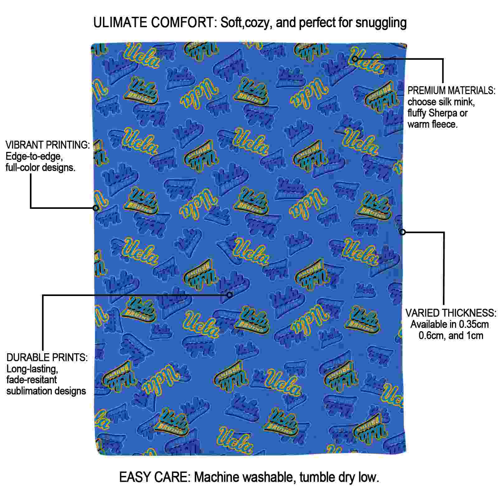 Without a doubt, the UCLA Bruins Diehard Fans Blue Blanket from UCLA Bruins Blankets collection is offering true fans a chance to showcase passion in a cool way. Personalize it with your favorite team's logo or a meaningful name to make it uniquely yours. Isn't that great? The full-color print ensures vibrant, edge-to-edge designs, bringing your sports enthusiasm to life!