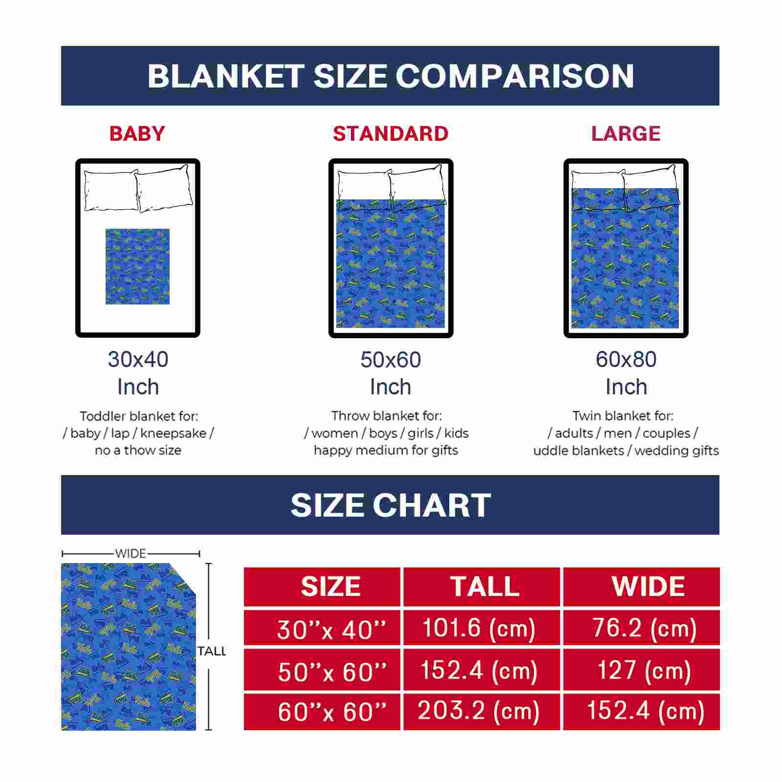 Still, wait, there's more! Available in three options to suit every fan, we offer varying thickness and feel, from the soft 0.6 cm fleece to the lightweight 0.35 cm and the luxurious 1 cm mink sherpa. Extra point: To maintain its nice look and softness, take it easy! Just simply machine wash it separately in cold water and tumble dry on low, avoiding heat pressing, ironing, or dry cleaning!