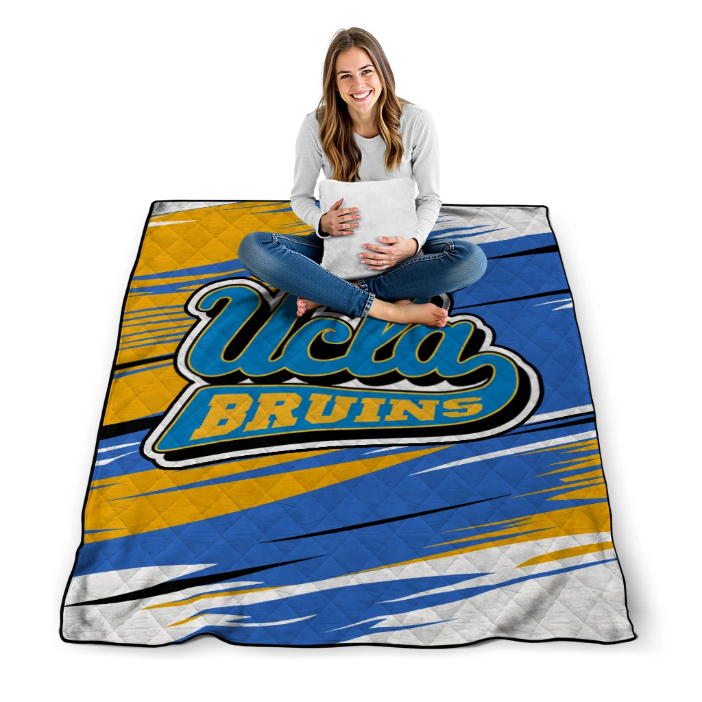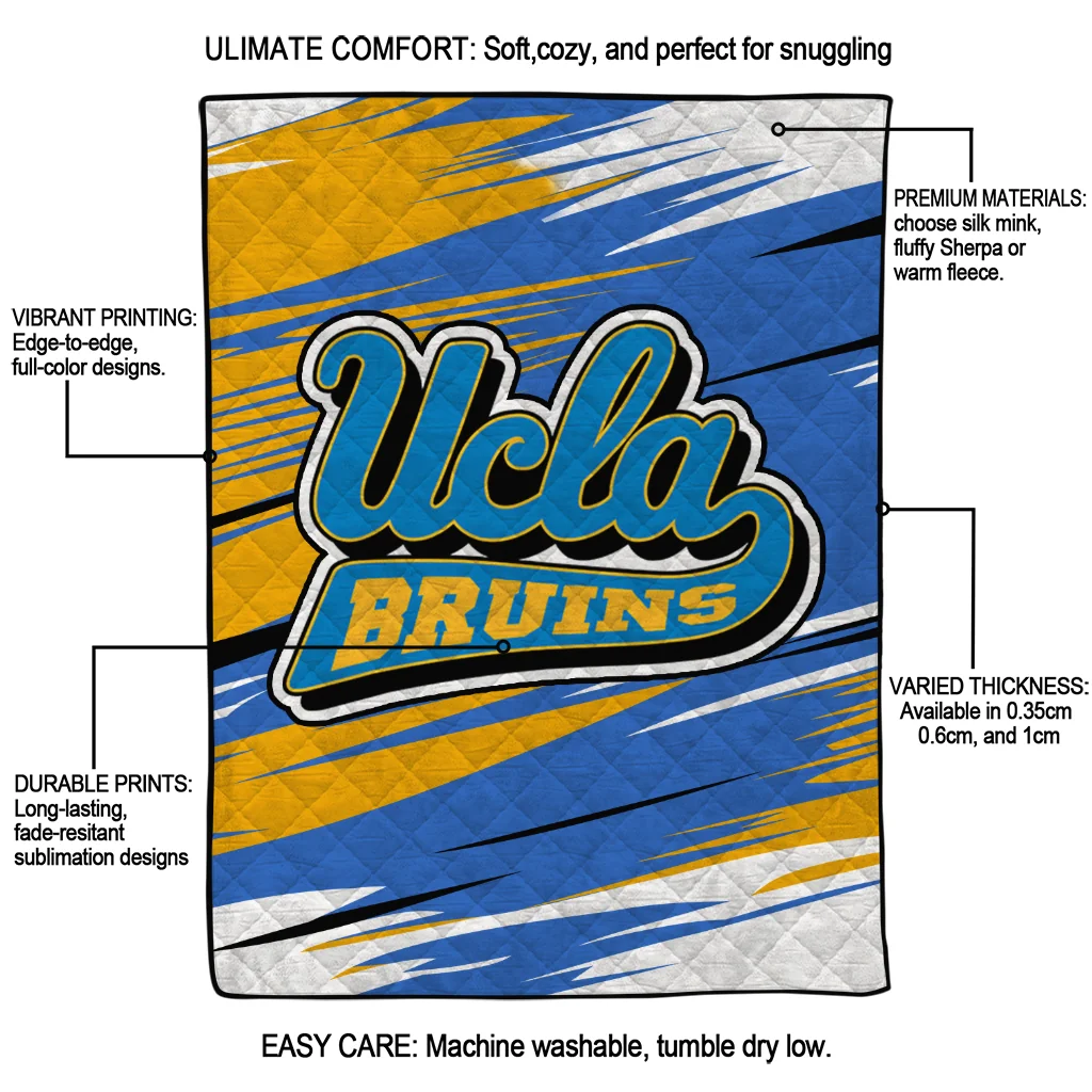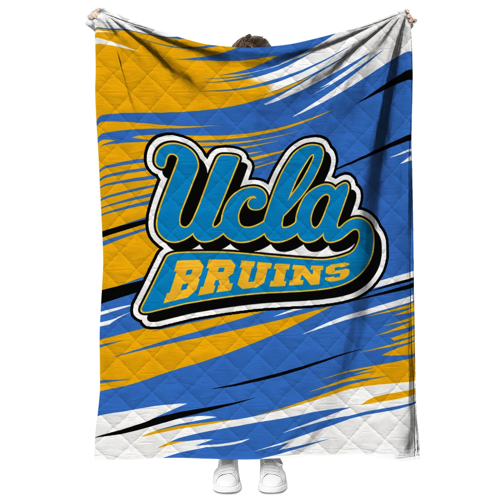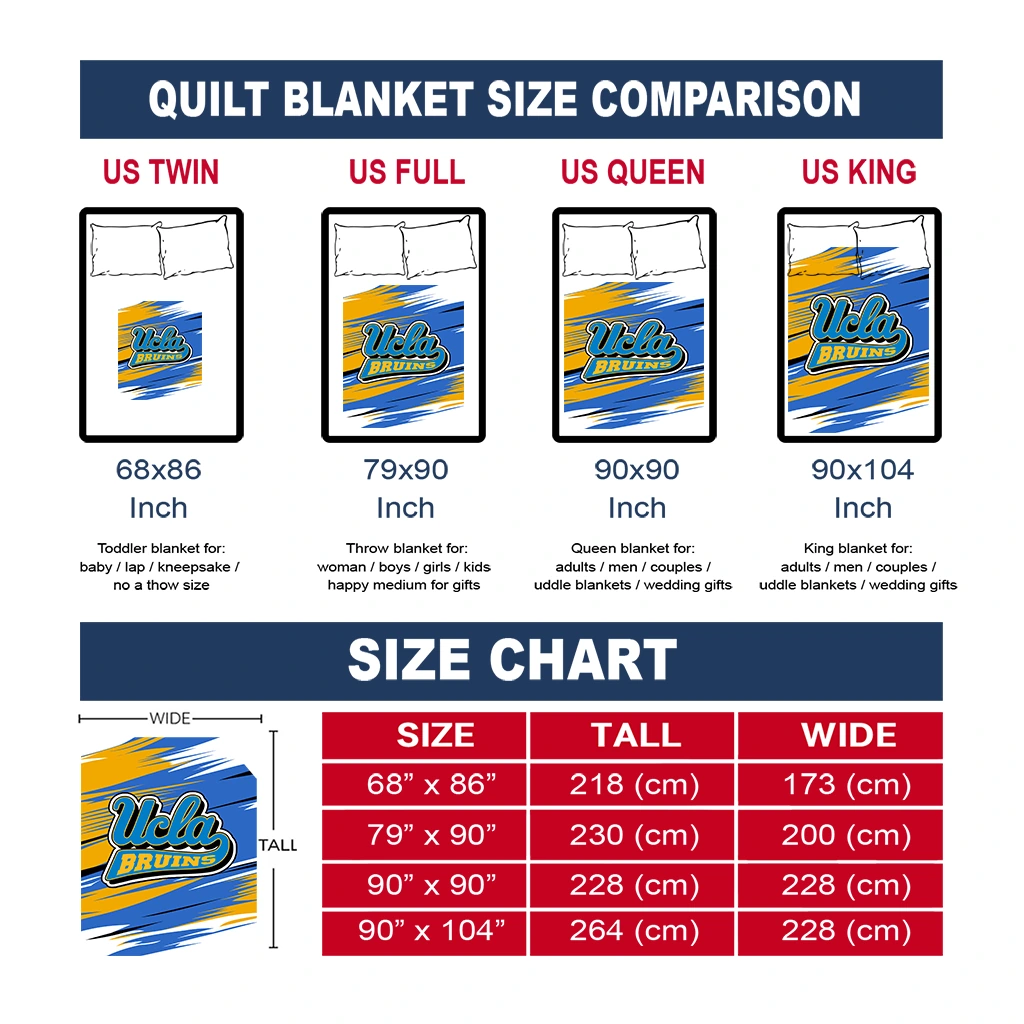 Wrap yourself in warmth and pride with the UCLA Bruins Wild Lines Blue White Quilt Blanket from the UCLA Bruins Blankets collection at Yes That Blanket. Made from 100% premium quilting-weight polyester blended with a touch of microfiber, this quilt offers a smooth, soft finish you’ll love. Choose between two quilting styles—Stipple or Diagonal—and enjoy the comfort of a cotton-filled layer inside that adds extra coziness for every season. The border is available in classic black or white, giving your design a clean, timeless edge.