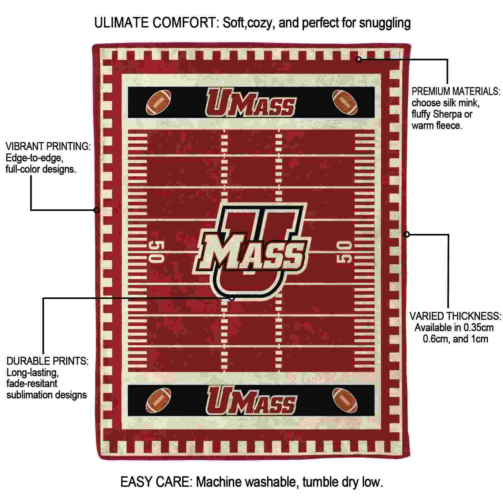 Without a doubt, the UMass Minutemen Football Field Red Blanket from UMass Minutemen Blankets collection is offering true fans a chance to showcase passion in a cool way. Personalize it with your favorite team's logo or a meaningful name to make it uniquely yours. Isn't that great? The full-color print ensures vibrant, edge-to-edge designs, bringing your sports enthusiasm to life!