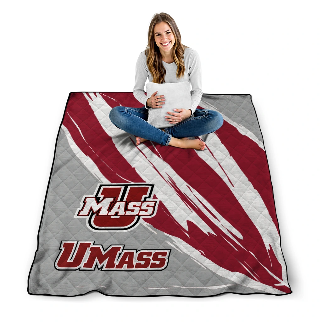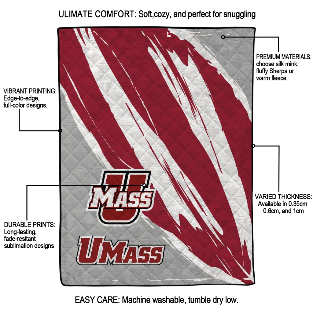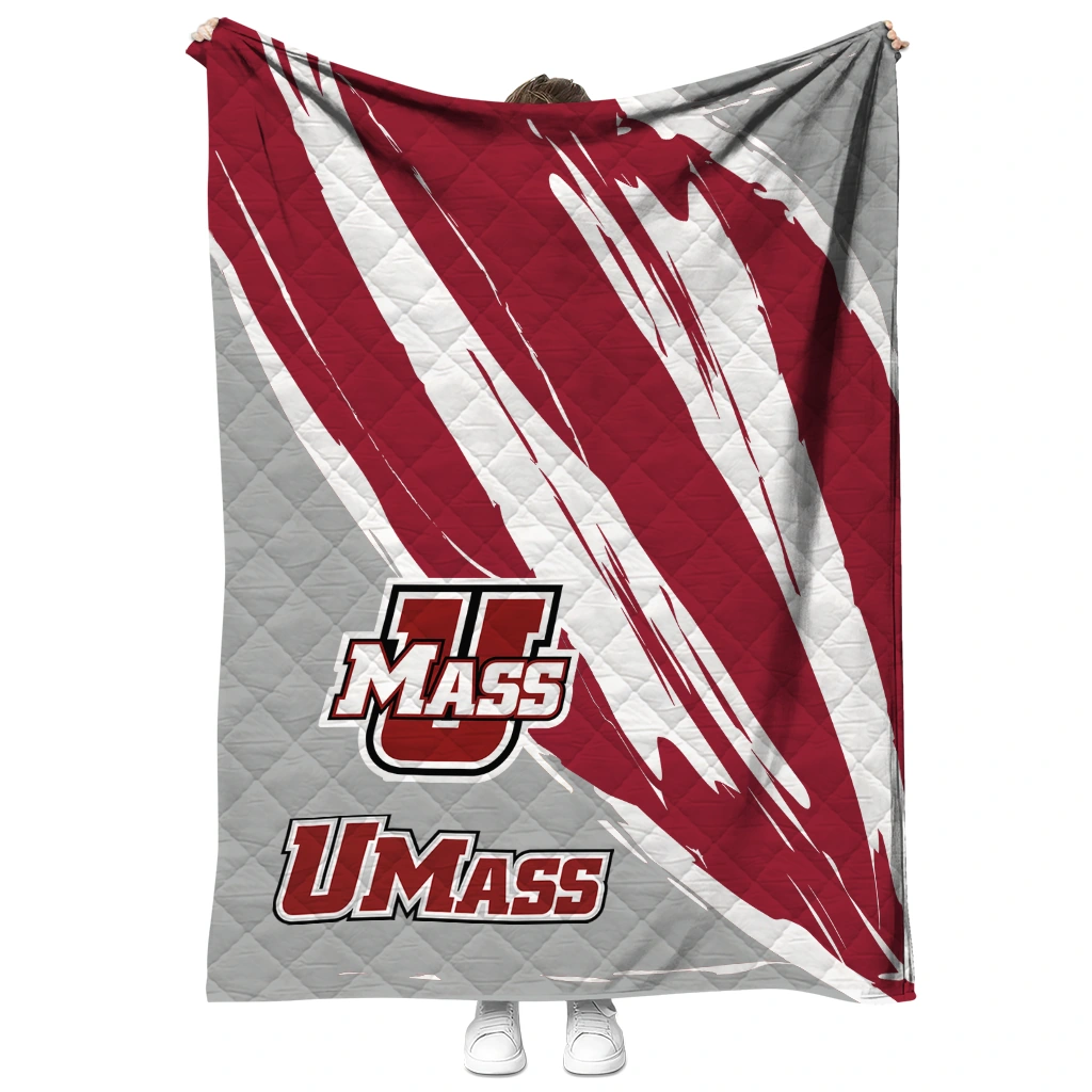 UMass Minutemen Stroke Art Red White Quilt Blanket