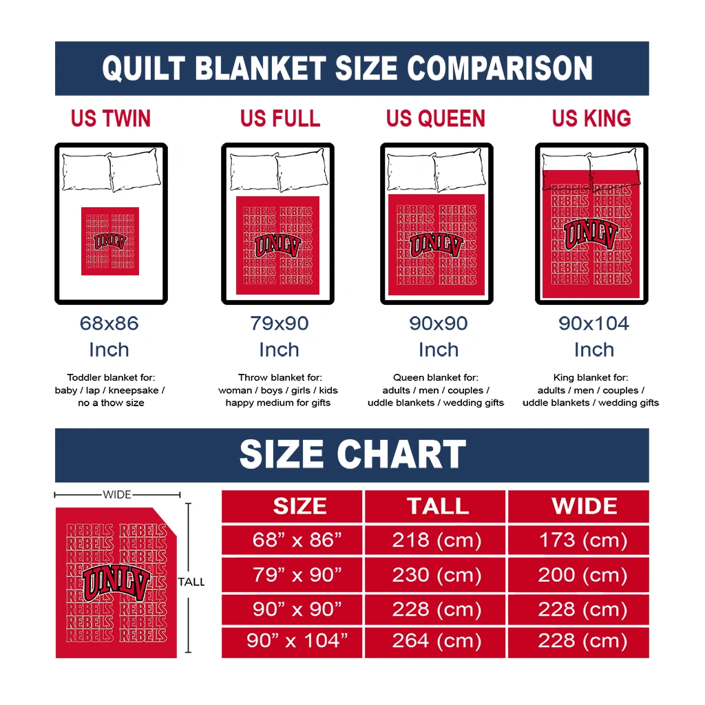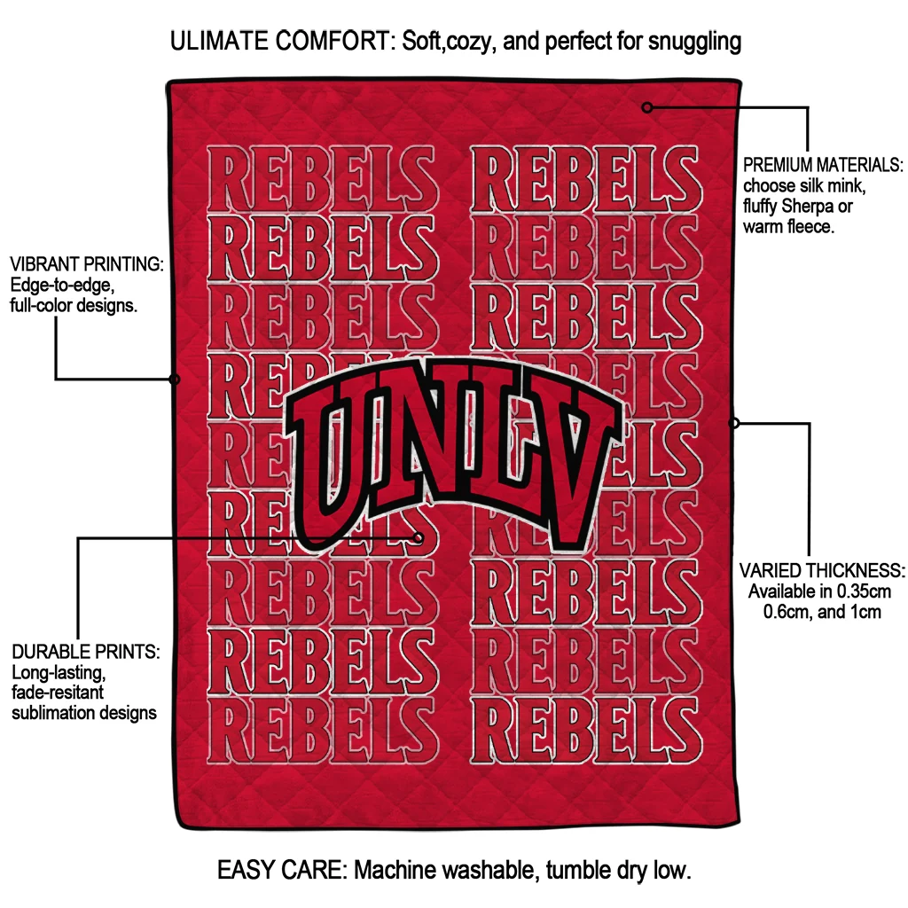Wrap yourself in warmth and pride with the UNLV Rebels Bold Red Quilt Blanket from the UNLV Rebels Blankets collection at Yes That Blanket. Made from 100% premium quilting-weight polyester blended with a touch of microfiber, this quilt offers a smooth, soft finish you’ll love. Choose between two quilting styles—Stipple or Diagonal—and enjoy the comfort of a cotton-filled layer inside that adds extra coziness for every season. The border is available in classic black or white, giving your design a clean, timeless edge.