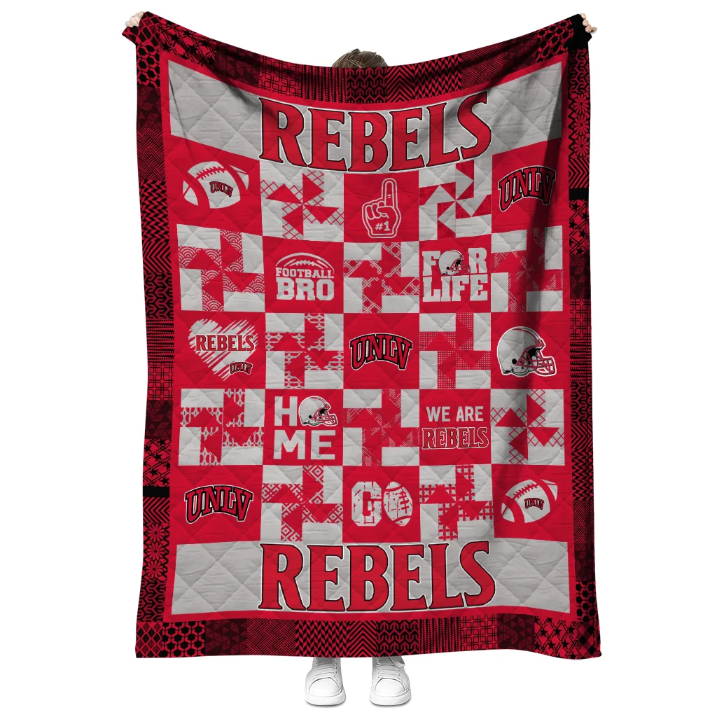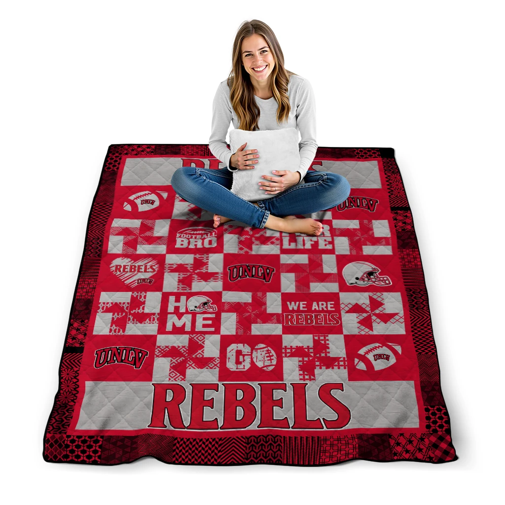 Wrap yourself in warmth and pride with the UNLV Rebels Helmet Heart Red Quilt Blanket from the UNLV Rebels Blankets collection at Yes That Blanket. Made from 100% premium quilting-weight polyester blended with a touch of microfiber, this quilt offers a smooth, soft finish you’ll love. Choose between two quilting styles—Stipple or Diagonal—and enjoy the comfort of a cotton-filled layer inside that adds extra coziness for every season. The border is available in classic black or white, giving your design a clean, timeless edge.
