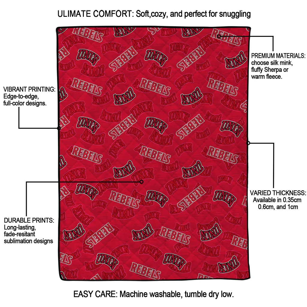 Wrap yourself in warmth and pride with the UNLV Rebels Solid Classic Red Quilt Blanket from the UNLV Rebels Blankets collection at Yes That Blanket. Made from 100% premium quilting-weight polyester blended with a touch of microfiber, this quilt offers a smooth, soft finish you’ll love. Choose between two quilting styles—Stipple or Diagonal—and enjoy the comfort of a cotton-filled layer inside that adds extra coziness for every season. The border is available in classic black or white, giving your design a clean, timeless edge.