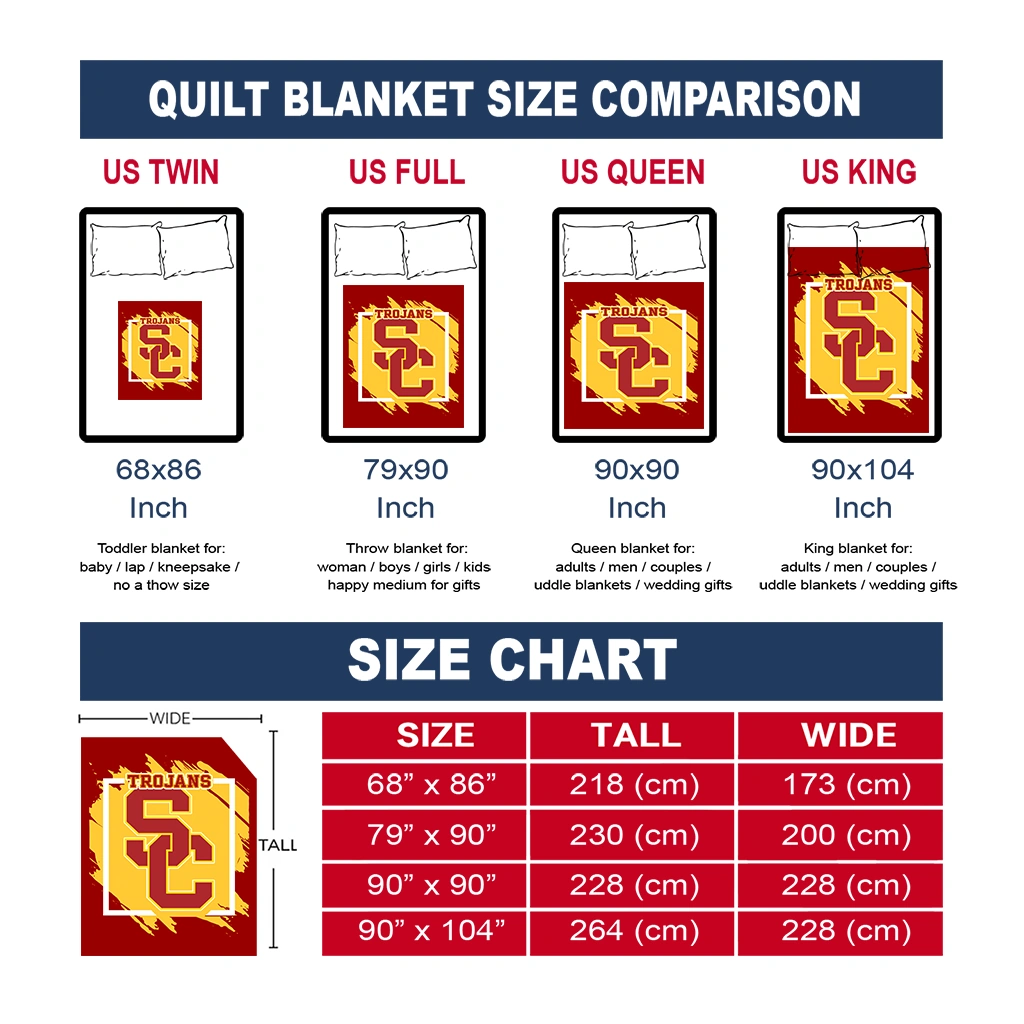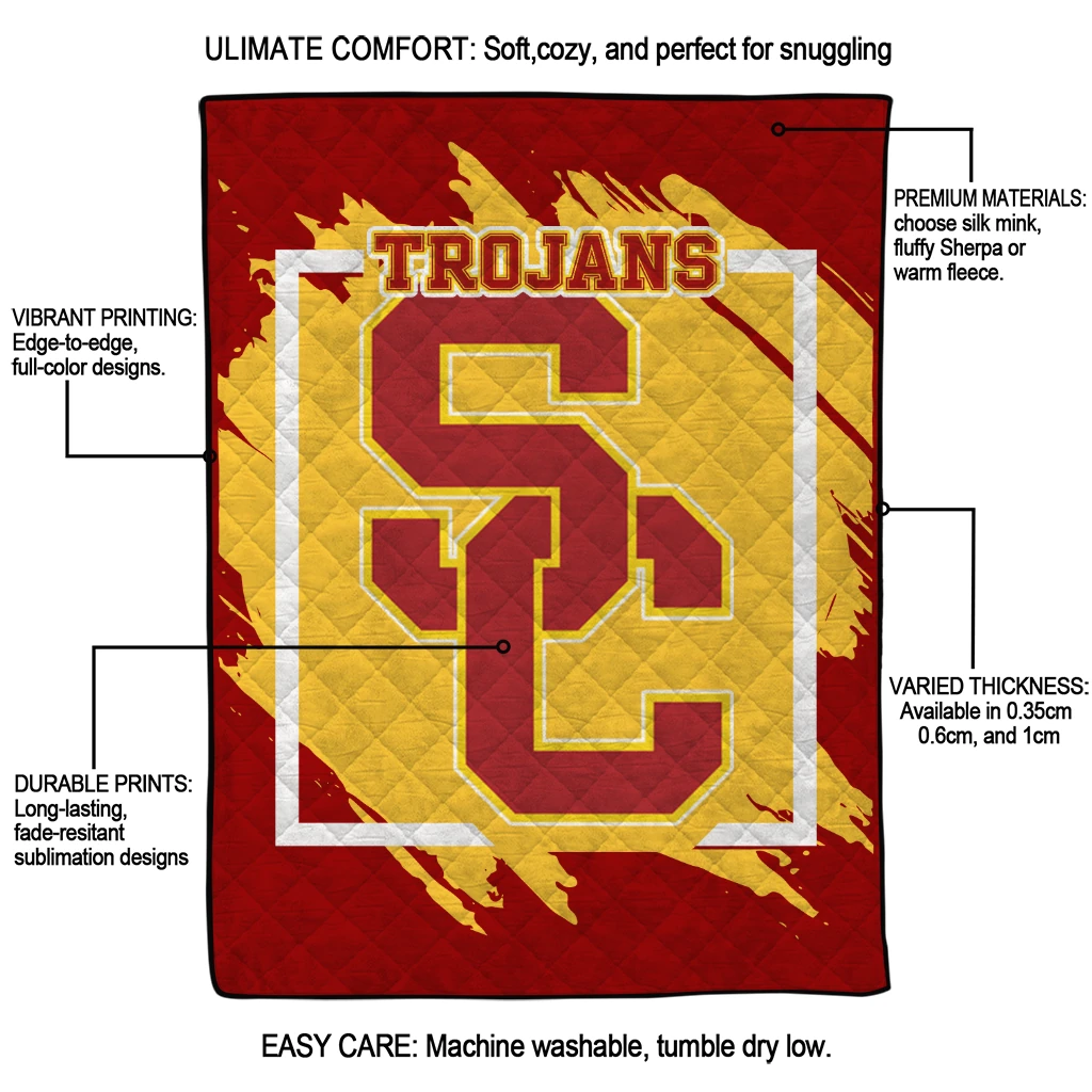 Wrap yourself in warmth and pride with the USC Trojans Block Border Red Quilt Blanket from the USC Trojans Blankets collection at Yes That Blanket. Made from 100% premium quilting-weight polyester blended with a touch of microfiber, this quilt offers a smooth, soft finish you’ll love. Choose between two quilting styles—Stipple or Diagonal—and enjoy the comfort of a cotton-filled layer inside that adds extra coziness for every season. The border is available in classic black or white, giving your design a clean, timeless edge.
