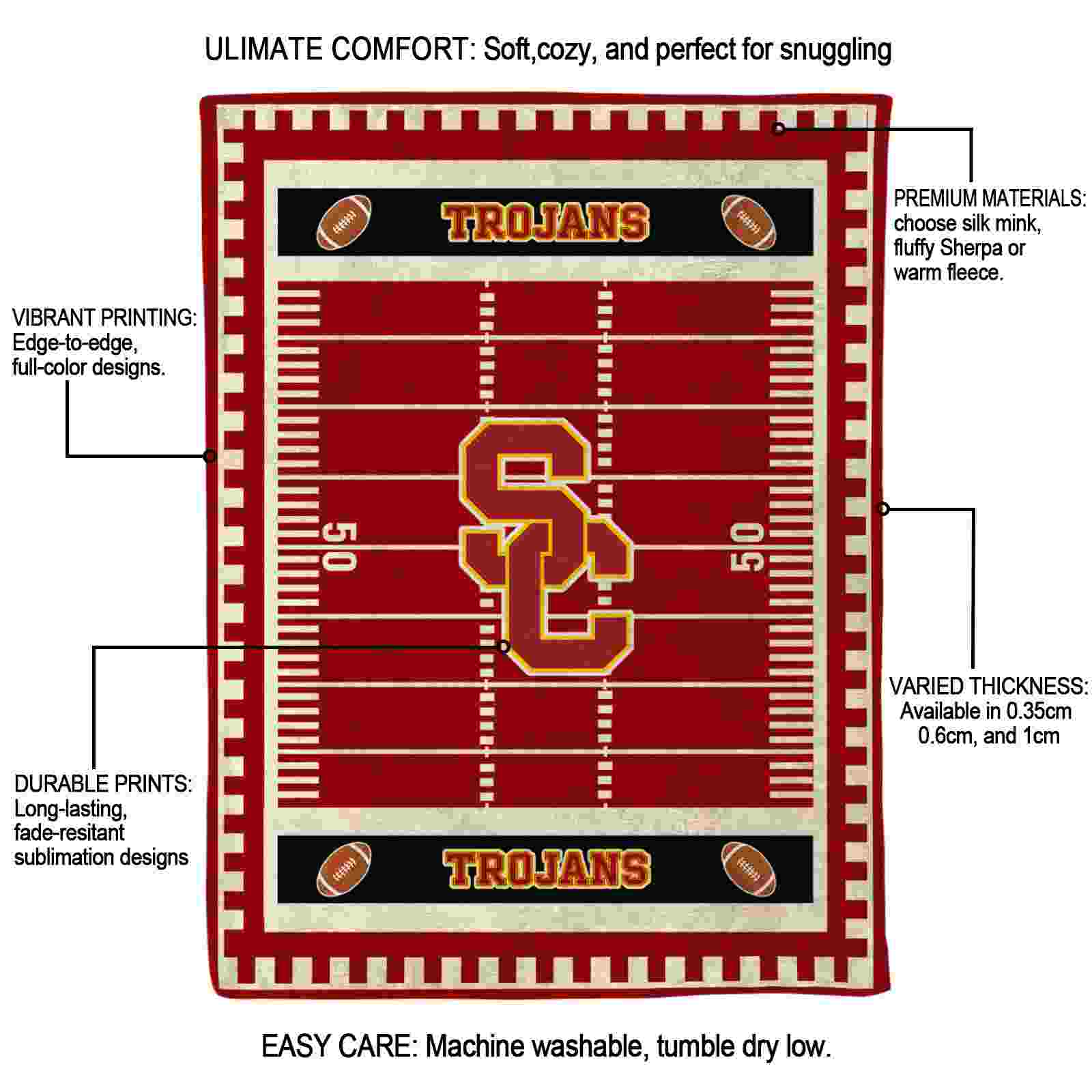 Without a doubt, the USC Trojans Football Field Red Blanket from USC Trojans Blankets collection is offering true fans a chance to showcase passion in a cool way. Personalize it with your favorite team’s logo or a meaningful name to make it uniquely yours. Isn’t that great? The full-color print ensures vibrant, edge-to-edge designs, bringing your sports enthusiasm to life!
