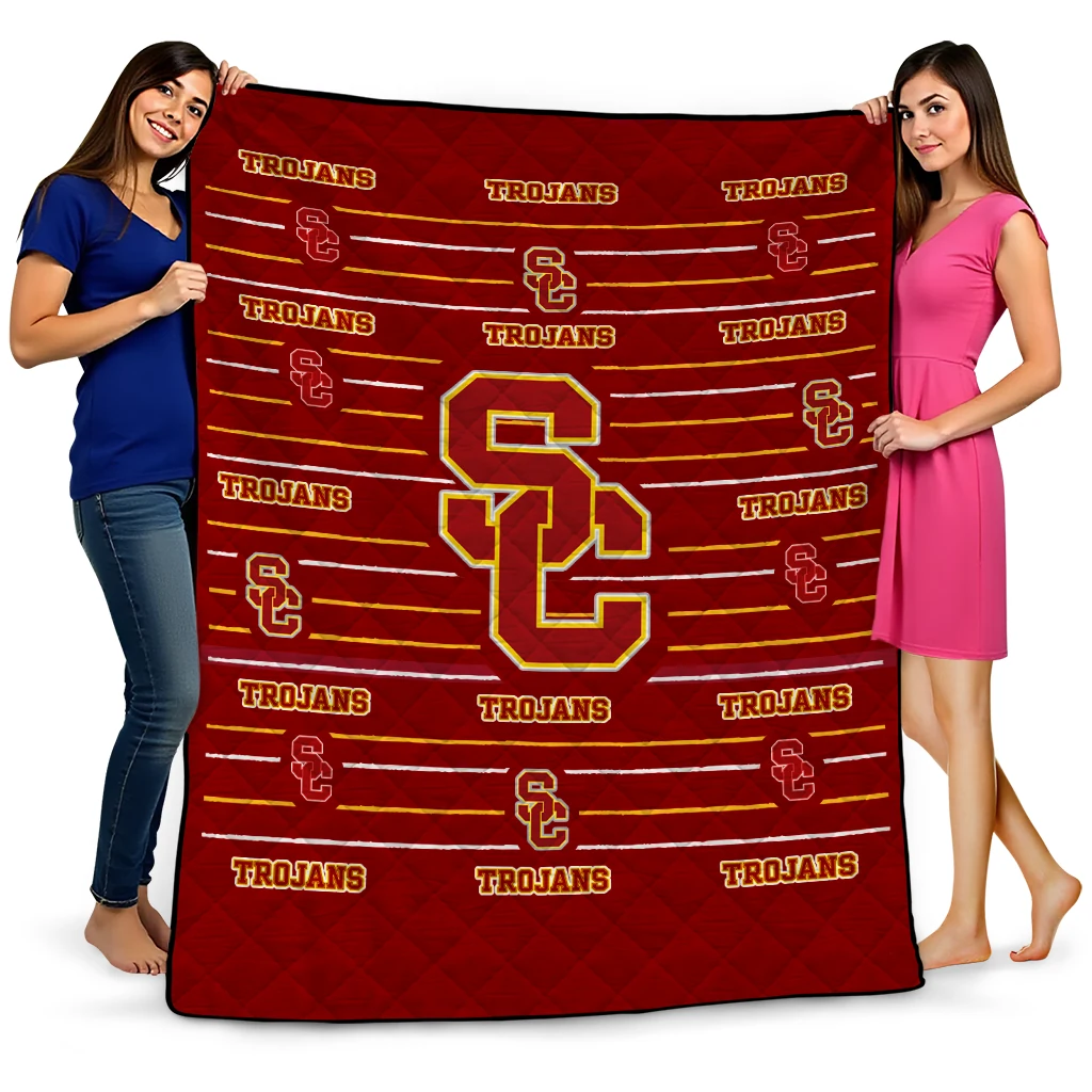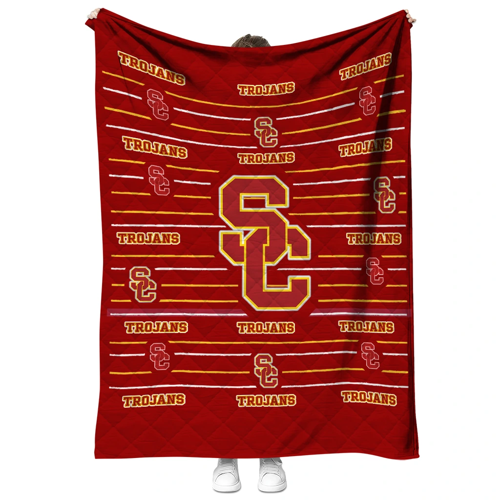 Wrap yourself in warmth and pride with the USC Trojans Handdrawn Stripes Red Quilt Blanket from the USC Trojans Blankets collection at Yes That Blanket. Made from 100% premium quilting-weight polyester blended with a touch of microfiber, this quilt offers a smooth, soft finish you’ll love. Choose between two quilting styles—Stipple or Diagonal—and enjoy the comfort of a cotton-filled layer inside that adds extra coziness for every season. The border is available in classic black or white, giving your design a clean, timeless edge.