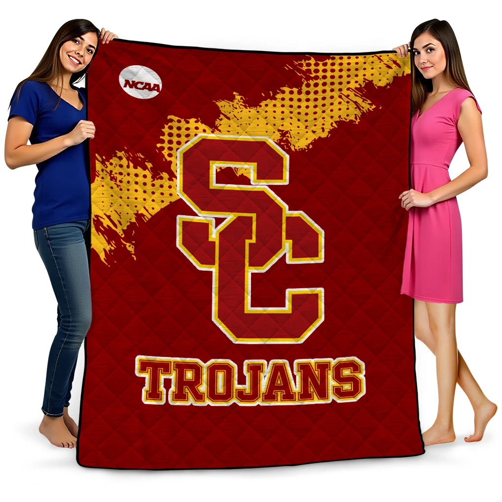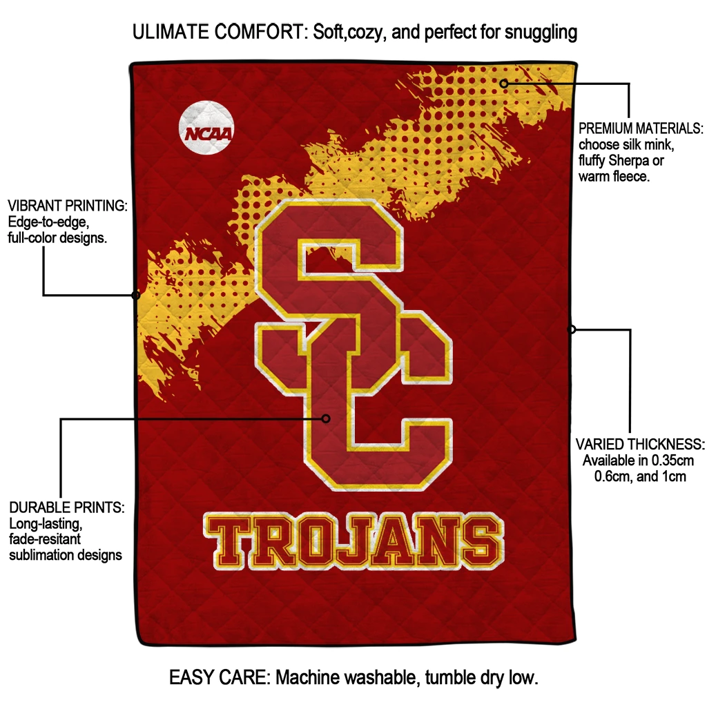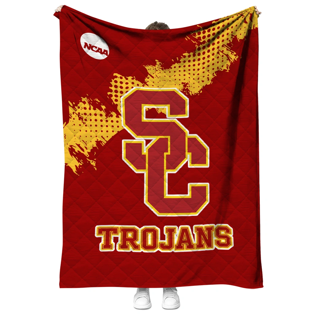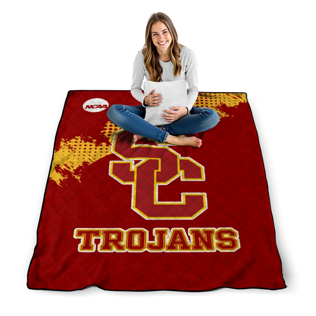 Wrap yourself in warmth and pride with the USC Trojans Paint Trail Red Quilt Blanket from the USC Trojans Blankets collection at Yes That Blanket. Made from 100% premium quilting-weight polyester blended with a touch of microfiber, this quilt offers a smooth, soft finish you’ll love. Choose between two quilting styles—Stipple or Diagonal—and enjoy the comfort of a cotton-filled layer inside that adds extra coziness for every season. The border is available in classic black or white, giving your design a clean, timeless edge.