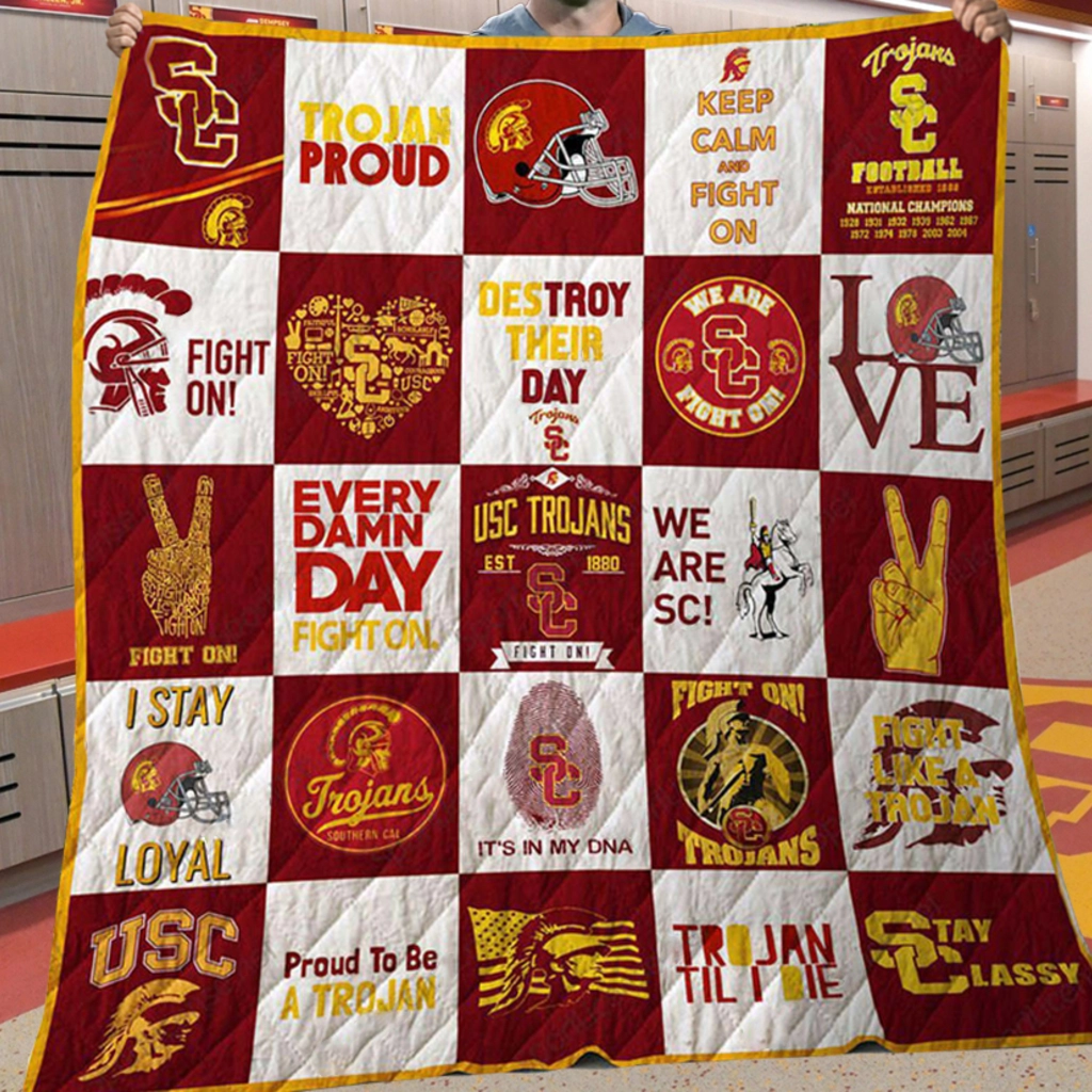 USC Trojans Quilt Blanket – Patchwork Logo Red Yellow