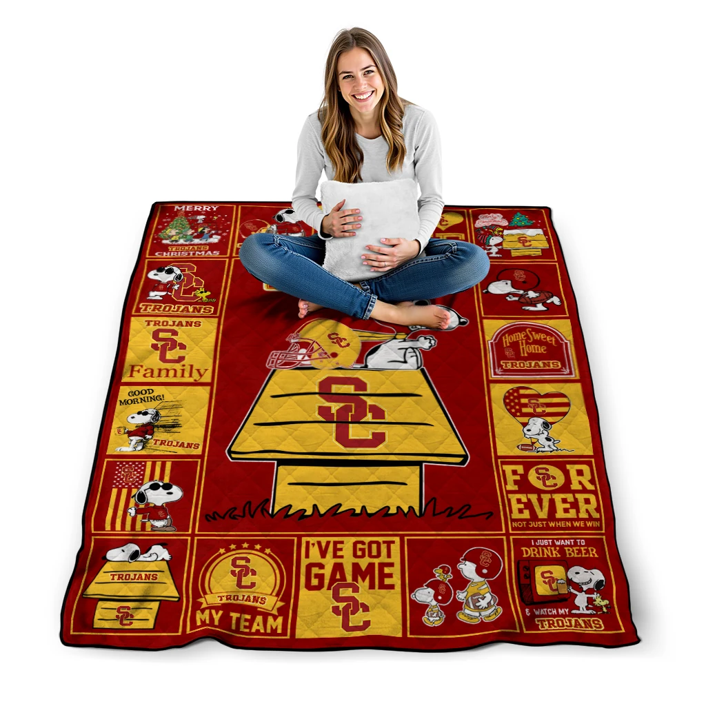 The USC Trojans Snoopy Love Red Quilt Blanket is more than a blanket—it’s everyday comfort, thoughtfully made. Crafted from premium quilting fabric with a soft microfiber touch, it offers a smooth hand-feel and lasting coziness. Layered quilting with a cotton-filled core provides adaptable warmth across seasons while maintaining a clean, tailored look on your bed or sofa.