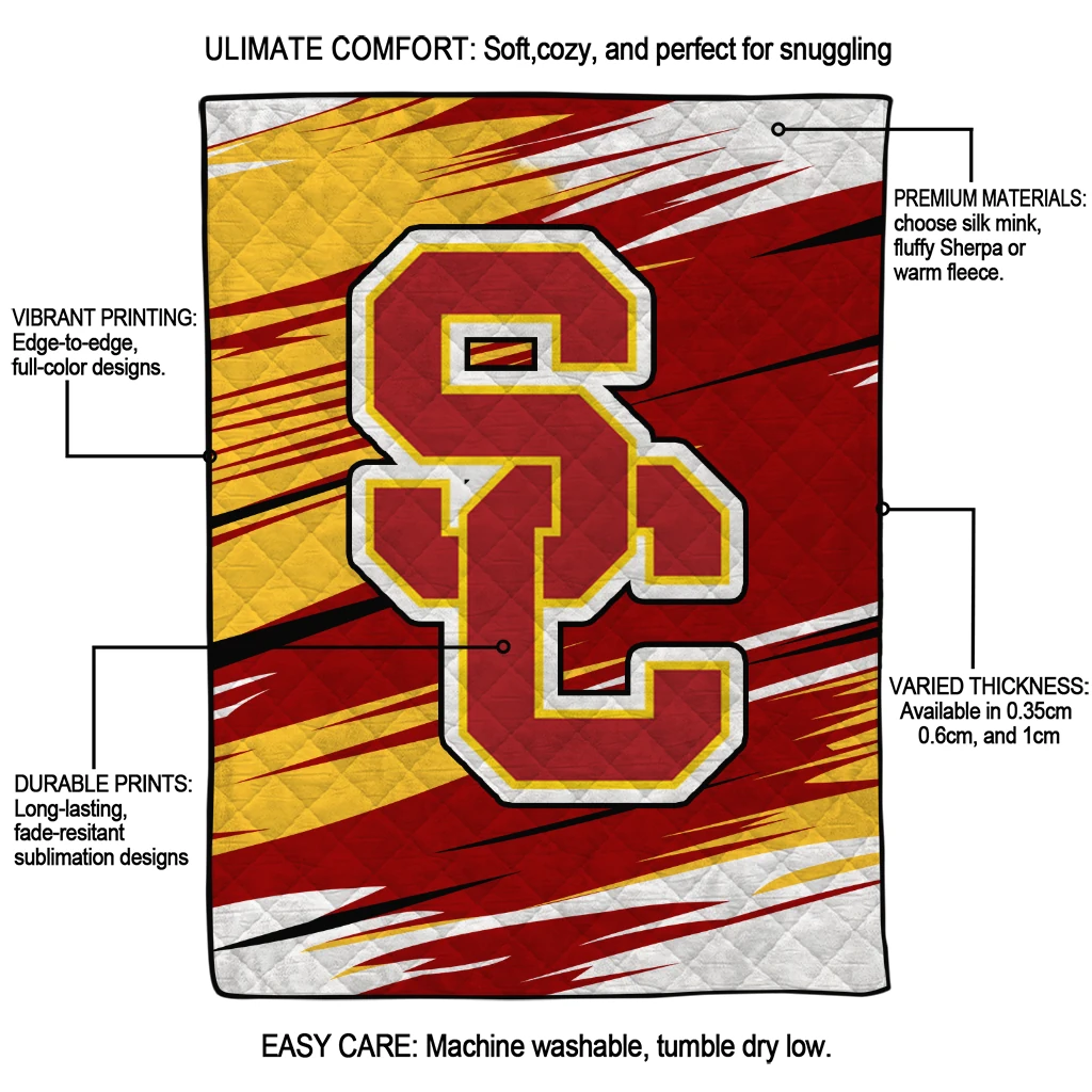 The USC Trojans Wild Lines Red White Quilt Blanket is more than a blanket—it’s everyday comfort, thoughtfully made. Crafted from premium quilting fabric with a soft microfiber touch, it offers a smooth hand-feel and lasting coziness. Layered quilting with a cotton-filled core provides adaptable warmth across seasons while maintaining a clean, tailored look on your bed or sofa.