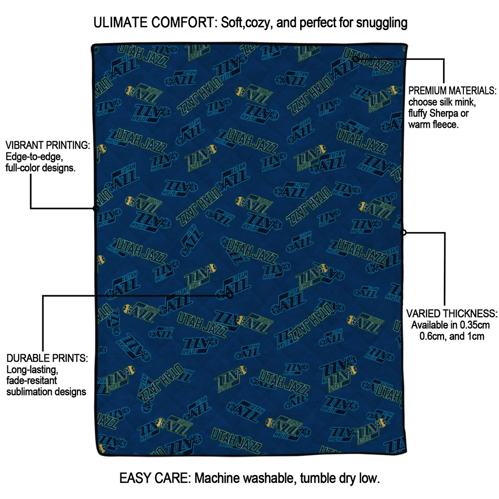 Wrap yourself in warmth and pride with the Utah Jazz Solid Classic Navy Quilt Blanket from the Utah Jazz Blankets collection at Yes That Blanket. Made from 100% premium quilting-weight polyester blended with a touch of microfiber, this quilt offers a smooth, soft finish you’ll love. Choose between two quilting styles—Stipple or Diagonal—and enjoy the comfort of a cotton-filled layer inside that adds extra coziness for every season. The border is available in classic black or white, giving your design a clean, timeless edge.