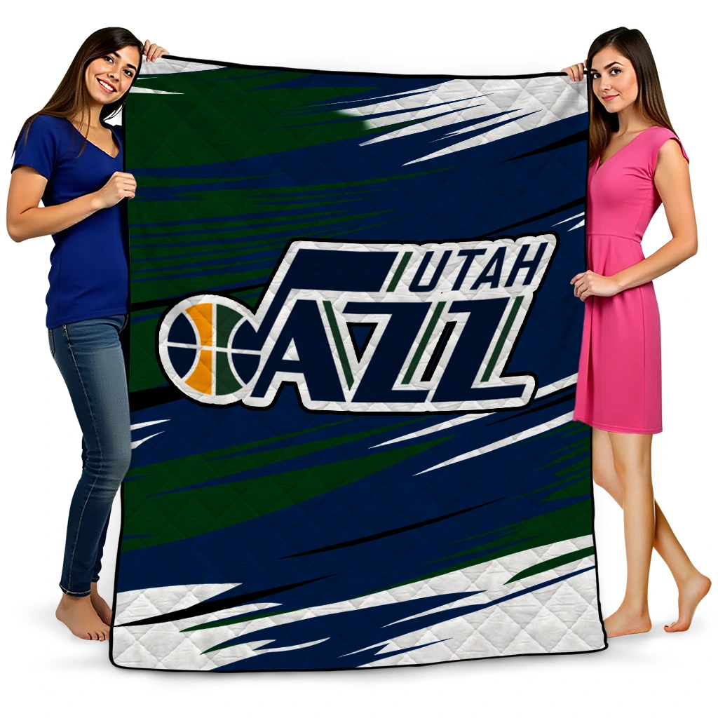 Utah Jazz Wild Lines Navy White Quilt Blanket