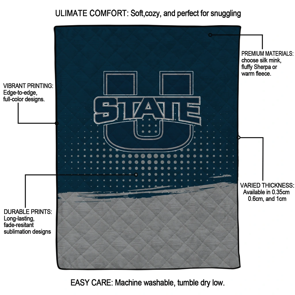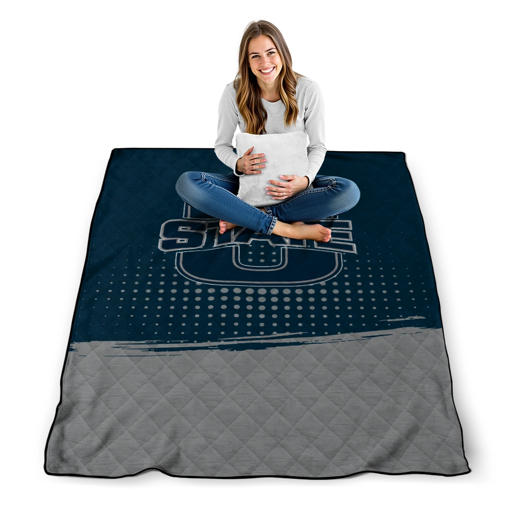 Wrap yourself in warmth and pride with the Utah State Aggies Dot Illusion Navy Quilt Blanket from the Utah State Aggies Blankets collection at Yes That Blanket. Made from 100% premium quilting-weight polyester blended with a touch of microfiber, this quilt offers a smooth, soft finish you’ll love. Choose between two quilting styles—Stipple or Diagonal—and enjoy the comfort of a cotton-filled layer inside that adds extra coziness for every season. The border is available in classic black or white, giving your design a clean, timeless edge.