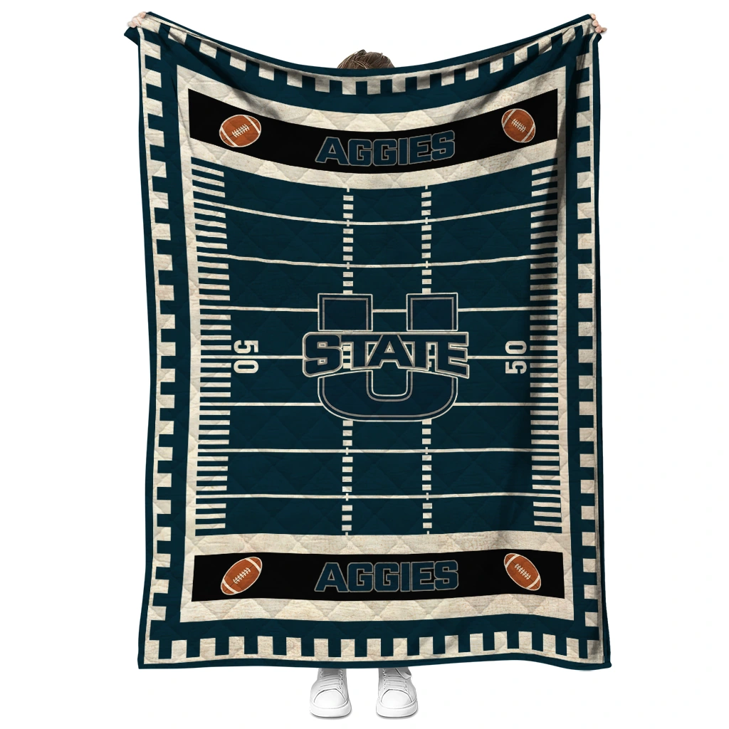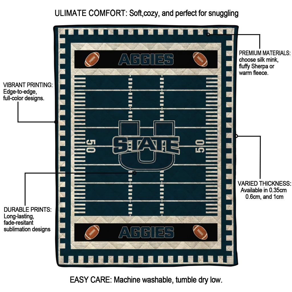 Wrap yourself in warmth and pride with the Utah State Aggies Mickey Player Navy Quilt Blanket from the Utah State Aggies Blankets collection at Yes That Blanket. Made from 100% premium quilting-weight polyester blended with a touch of microfiber, this quilt offers a smooth, soft finish you’ll love. Choose between two quilting styles—Stipple or Diagonal—and enjoy the comfort of a cotton-filled layer inside that adds extra coziness for every season. The border is available in classic black or white, giving your design a clean, timeless edge.