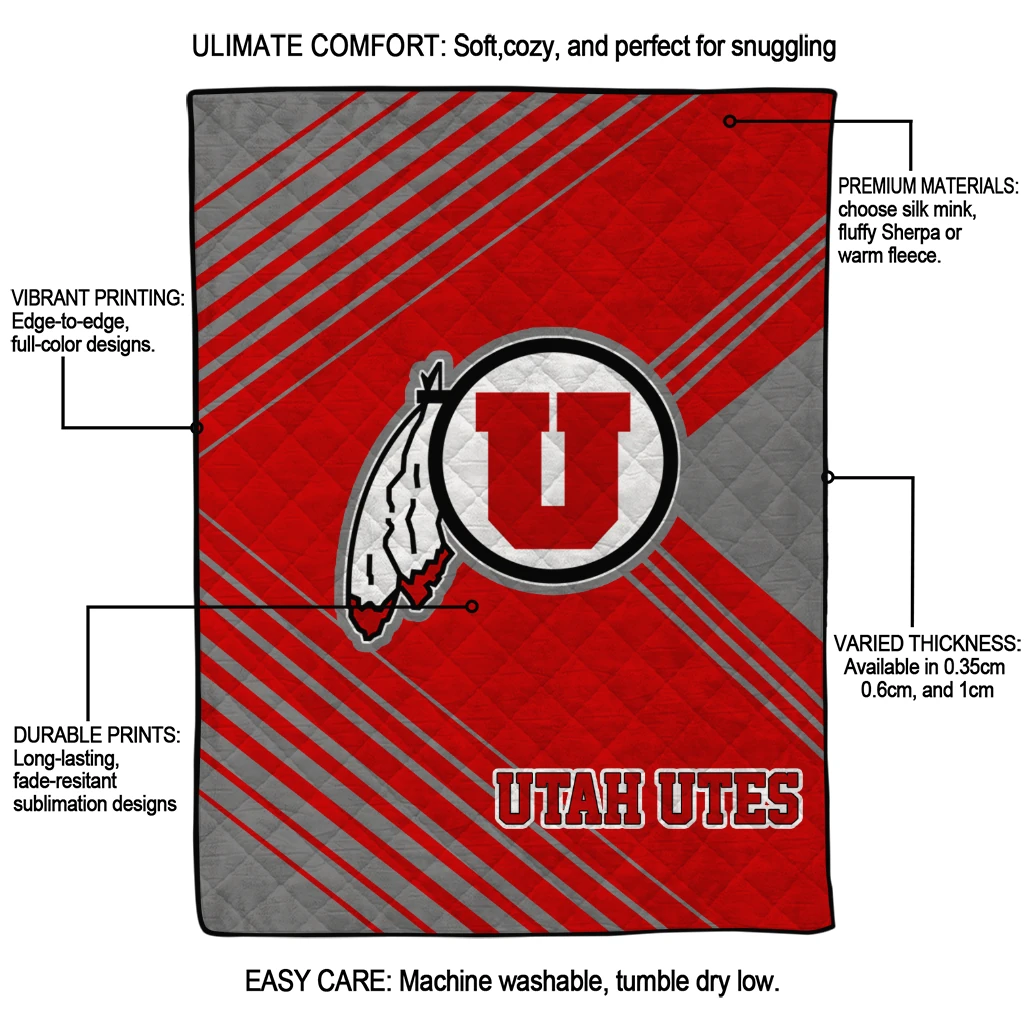 Wrap yourself in warmth and pride with the Utah Utes Arrow Layers Red Quilt Blanket from the Utah Utes Blankets collection at Yes That Blanket. Made from 100% premium quilting-weight polyester blended with a touch of microfiber, this quilt offers a smooth, soft finish you’ll love. Choose between two quilting styles—Stipple or Diagonal—and enjoy the comfort of a cotton-filled layer inside that adds extra coziness for every season. The border is available in classic black or white, giving your design a clean, timeless edge.