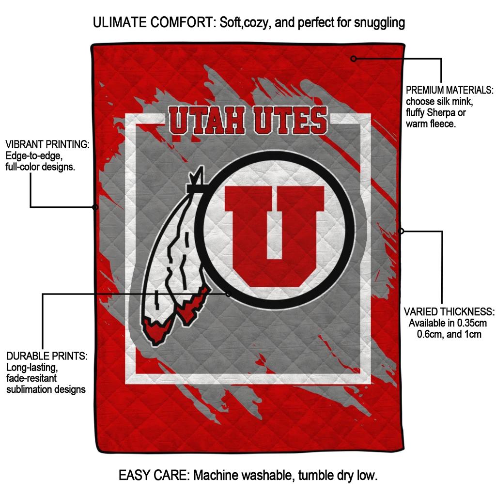 Wrap yourself in warmth and pride with the Utah Utes Block Border Red Quilt Blanket from the Utah Utes Blankets collection at Yes That Blanket. Made from 100% premium quilting-weight polyester blended with a touch of microfiber, this quilt offers a smooth, soft finish you’ll love. Choose between two quilting styles—Stipple or Diagonal—and enjoy the comfort of a cotton-filled layer inside that adds extra coziness for every season. The border is available in classic black or white, giving your design a clean, timeless edge.