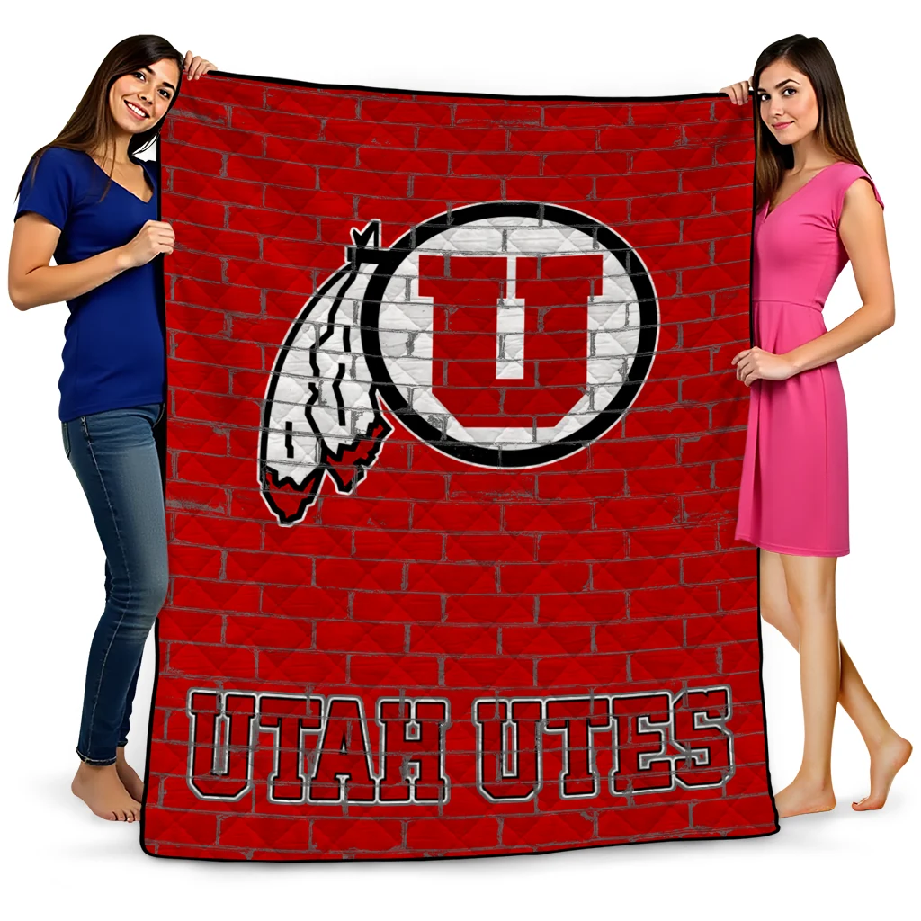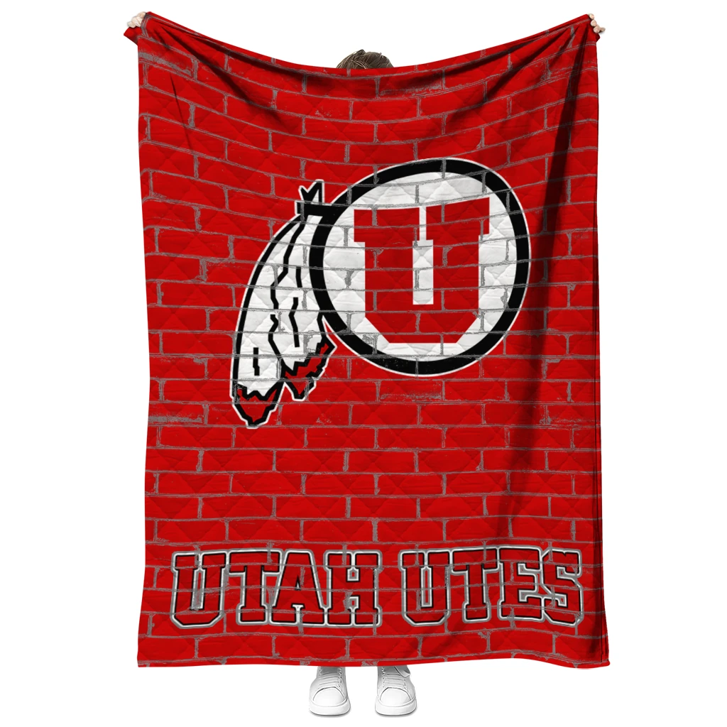 Utah Utes Brick Grid Red Quilt Blanket