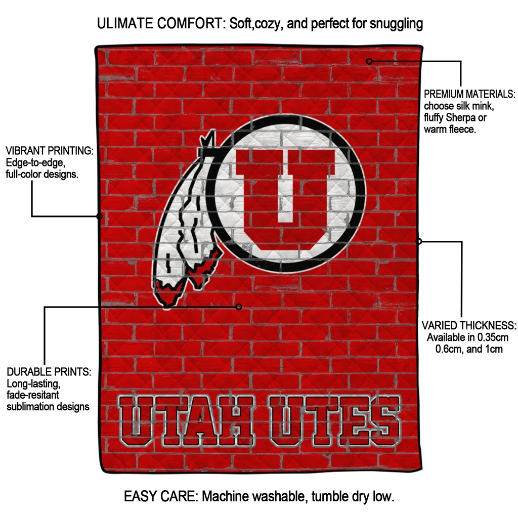 Wrap yourself in warmth and pride with the Utah Utes Brick Grid Red Quilt Blanket from the Utah Utes Blankets collection at Yes That Blanket. Made from 100% premium quilting-weight polyester blended with a touch of microfiber, this quilt offers a smooth, soft finish you’ll love. Choose between two quilting styles—Stipple or Diagonal—and enjoy the comfort of a cotton-filled layer inside that adds extra coziness for every season. The border is available in classic black or white, giving your design a clean, timeless edge.