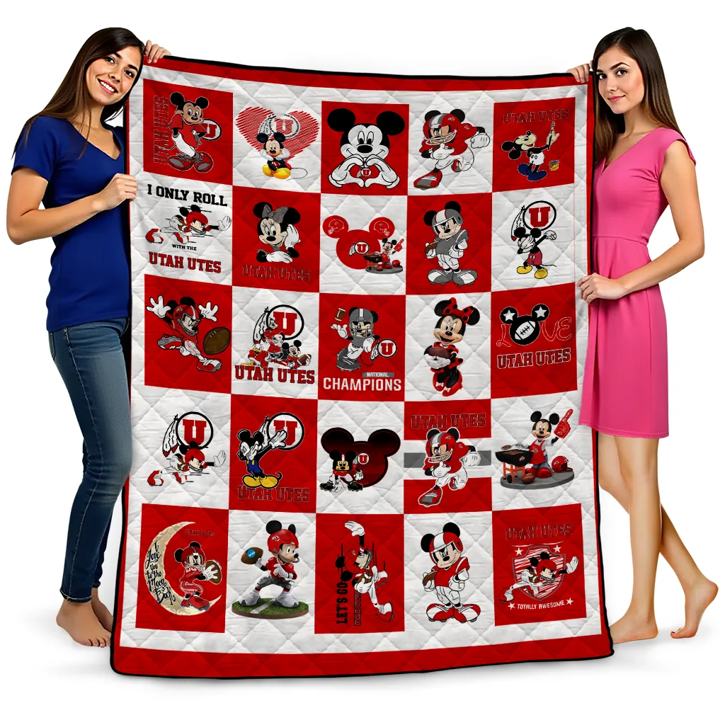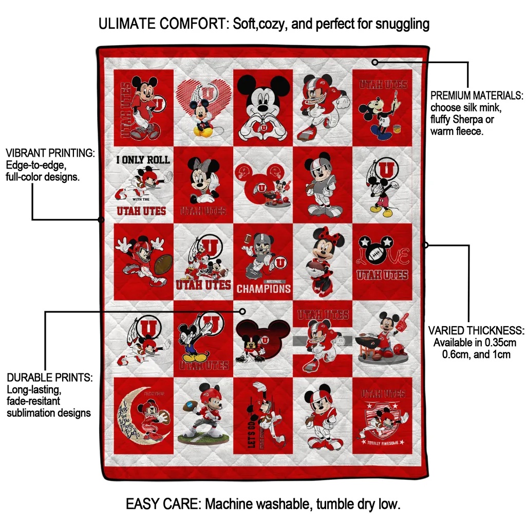 Utah Utes Mickey Mouse Motif Red White Quilt Blanket