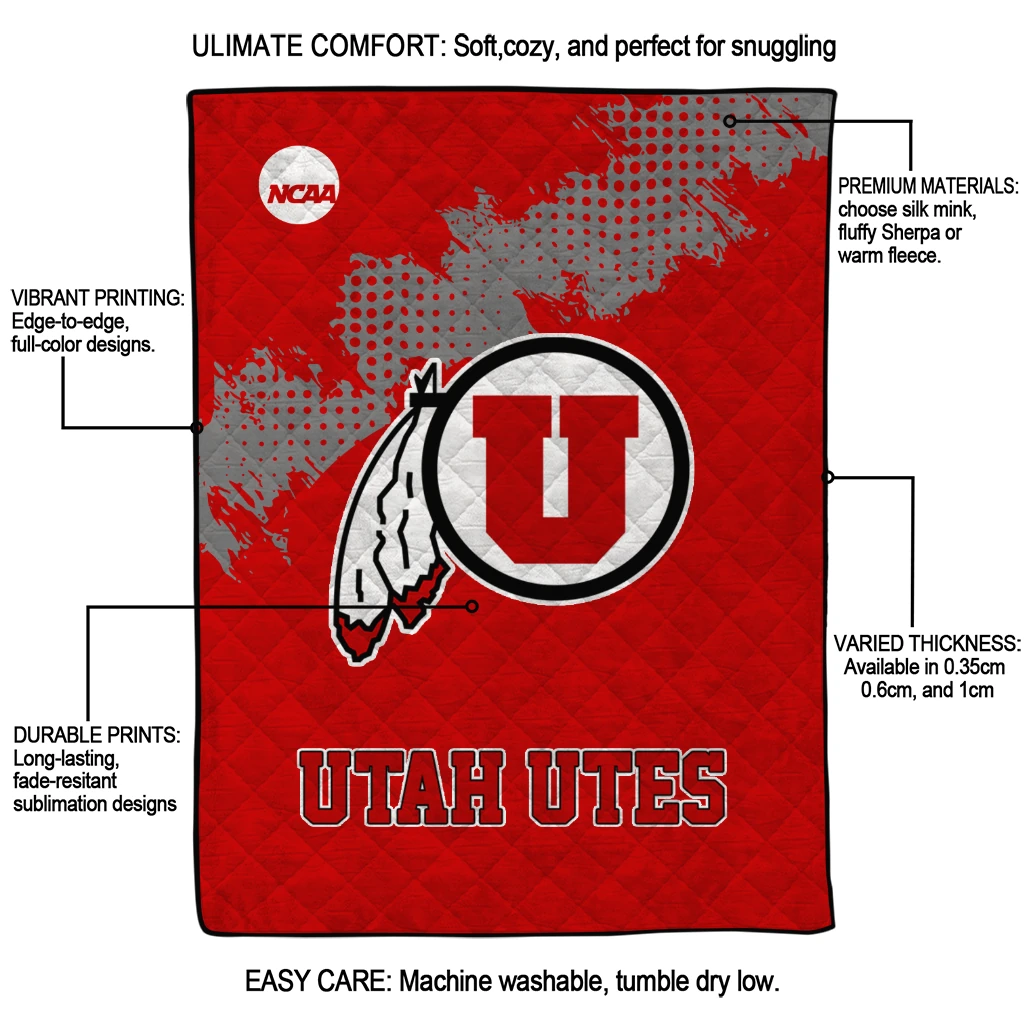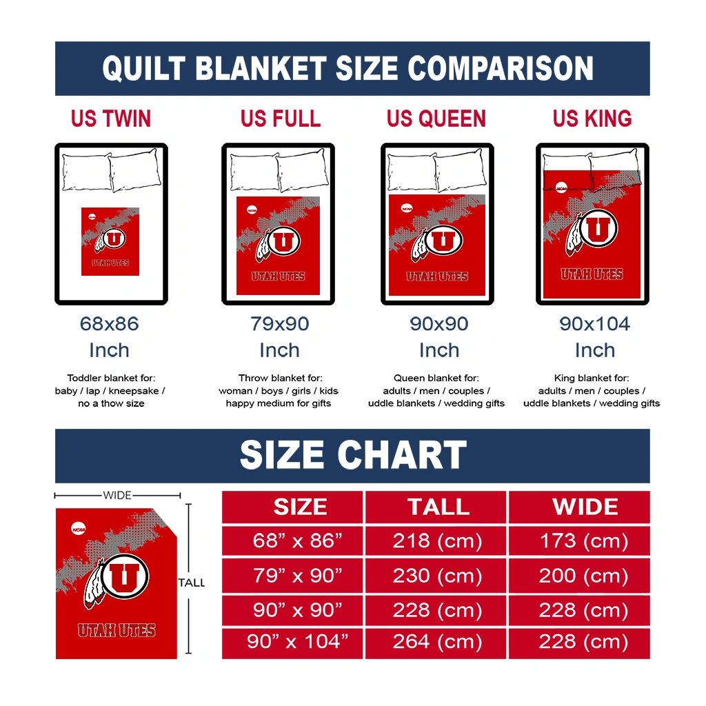 Wrap yourself in warmth and pride with the Utah Utes Paint Trail Red Quilt Blanket from the Utah Utes Blankets collection at Yes That Blanket. Made from 100% premium quilting-weight polyester blended with a touch of microfiber, this quilt offers a smooth, soft finish you’ll love. Choose between two quilting styles—Stipple or Diagonal—and enjoy the comfort of a cotton-filled layer inside that adds extra coziness for every season. The border is available in classic black or white, giving your design a clean, timeless edge.
