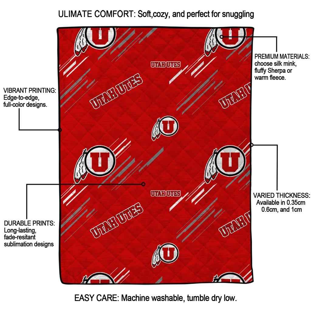 Wrap yourself in warmth and pride with the Utah Utes Sketch Lines Red Quilt Blanket from the Utah Utes Blankets collection at Yes That Blanket. Made from 100% premium quilting-weight polyester blended with a touch of microfiber, this quilt offers a smooth, soft finish you’ll love. Choose between two quilting styles—Stipple or Diagonal—and enjoy the comfort of a cotton-filled layer inside that adds extra coziness for every season. The border is available in classic black or white, giving your design a clean, timeless edge.