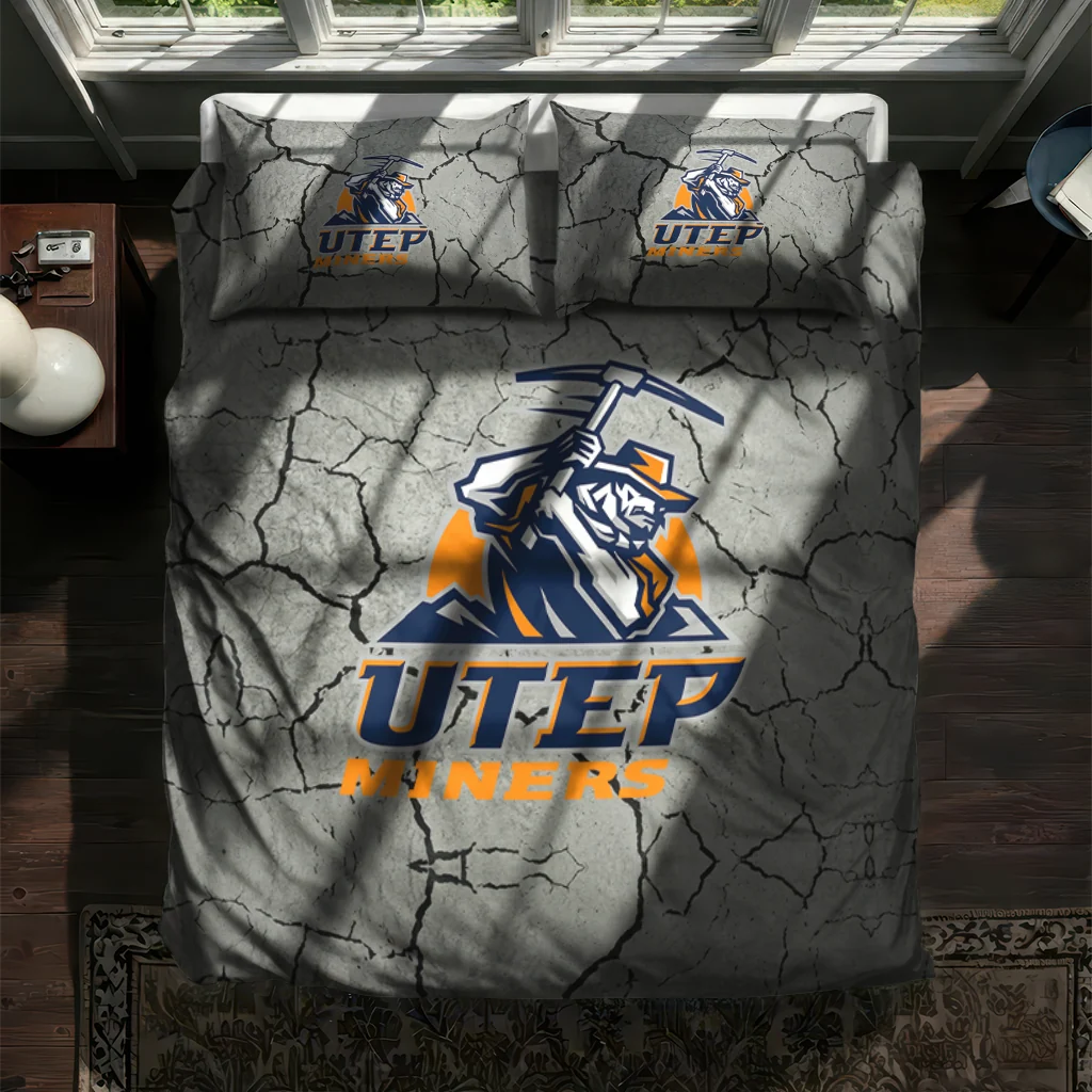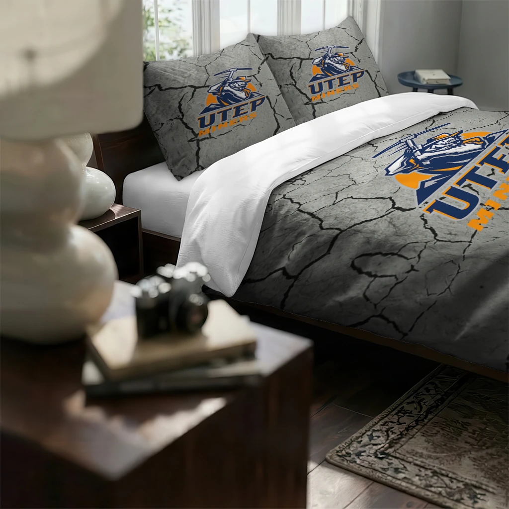 UTEP Miners Bedding Set – Cracked Texture Gray Orange