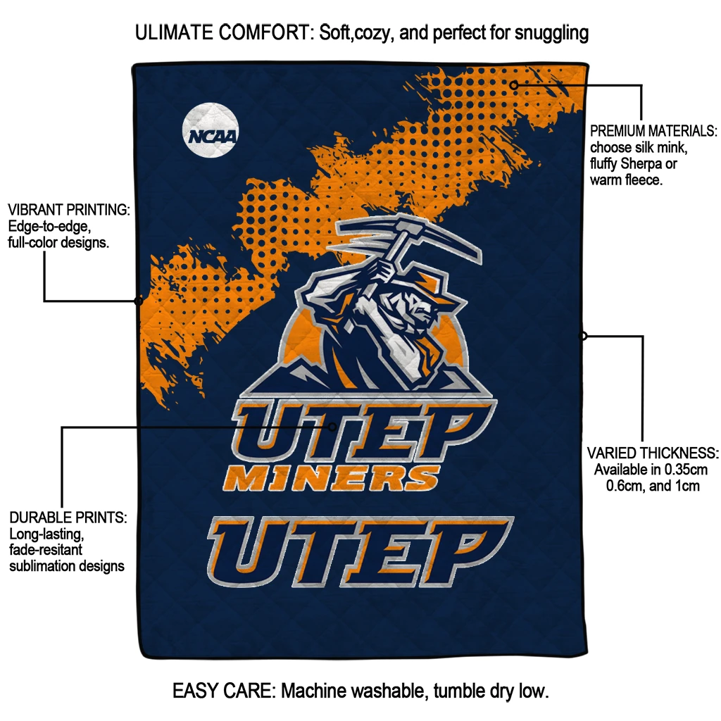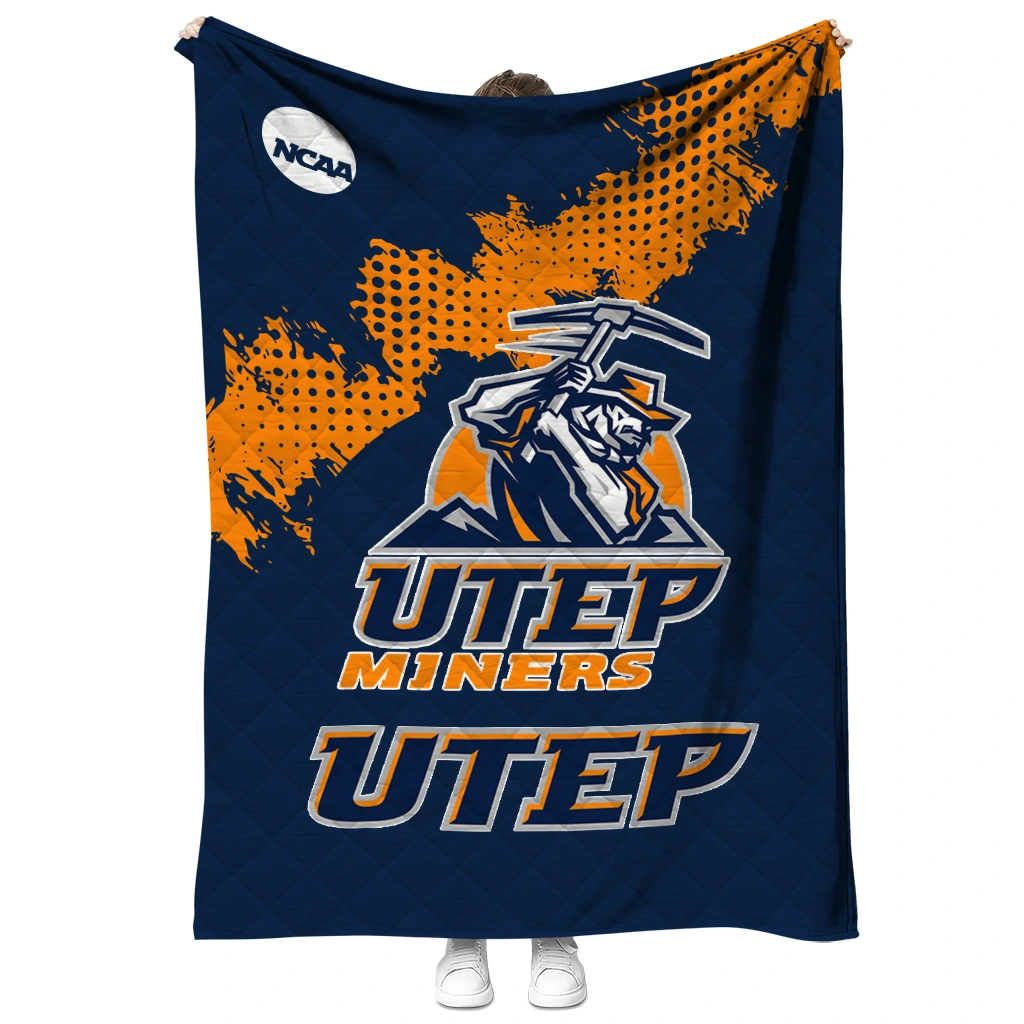 Wrap yourself in warmth and pride with the UTEP Miners Paint Trail Blue Quilt Blanket from the UTEP Miners Blankets collection at Yes That Blanket. Made from 100% premium quilting-weight polyester blended with a touch of microfiber, this quilt offers a smooth, soft finish you’ll love. Choose between two quilting styles—Stipple or Diagonal—and enjoy the comfort of a cotton-filled layer inside that adds extra coziness for every season. The border is available in classic black or white, giving your design a clean, timeless edge.