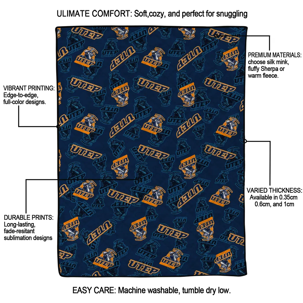 Wrap yourself in warmth and pride with the UTEP Miners Solid Classic Blue Quilt Blanket from the UTEP Miners Blankets collection at Yes That Blanket. Made from 100% premium quilting-weight polyester blended with a touch of microfiber, this quilt offers a smooth, soft finish you’ll love. Choose between two quilting styles—Stipple or Diagonal—and enjoy the comfort of a cotton-filled layer inside that adds extra coziness for every season. The border is available in classic black or white, giving your design a clean, timeless edge.