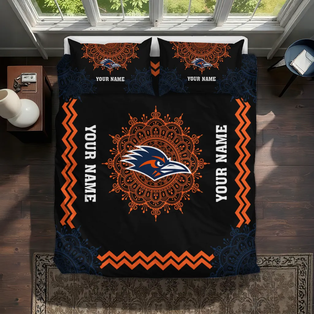 UTSA Roadrunners Bedding Set – Personalized Mandala Lacework Black Orange