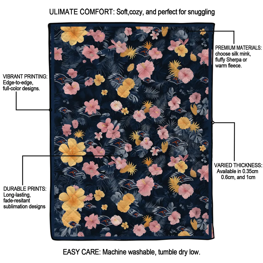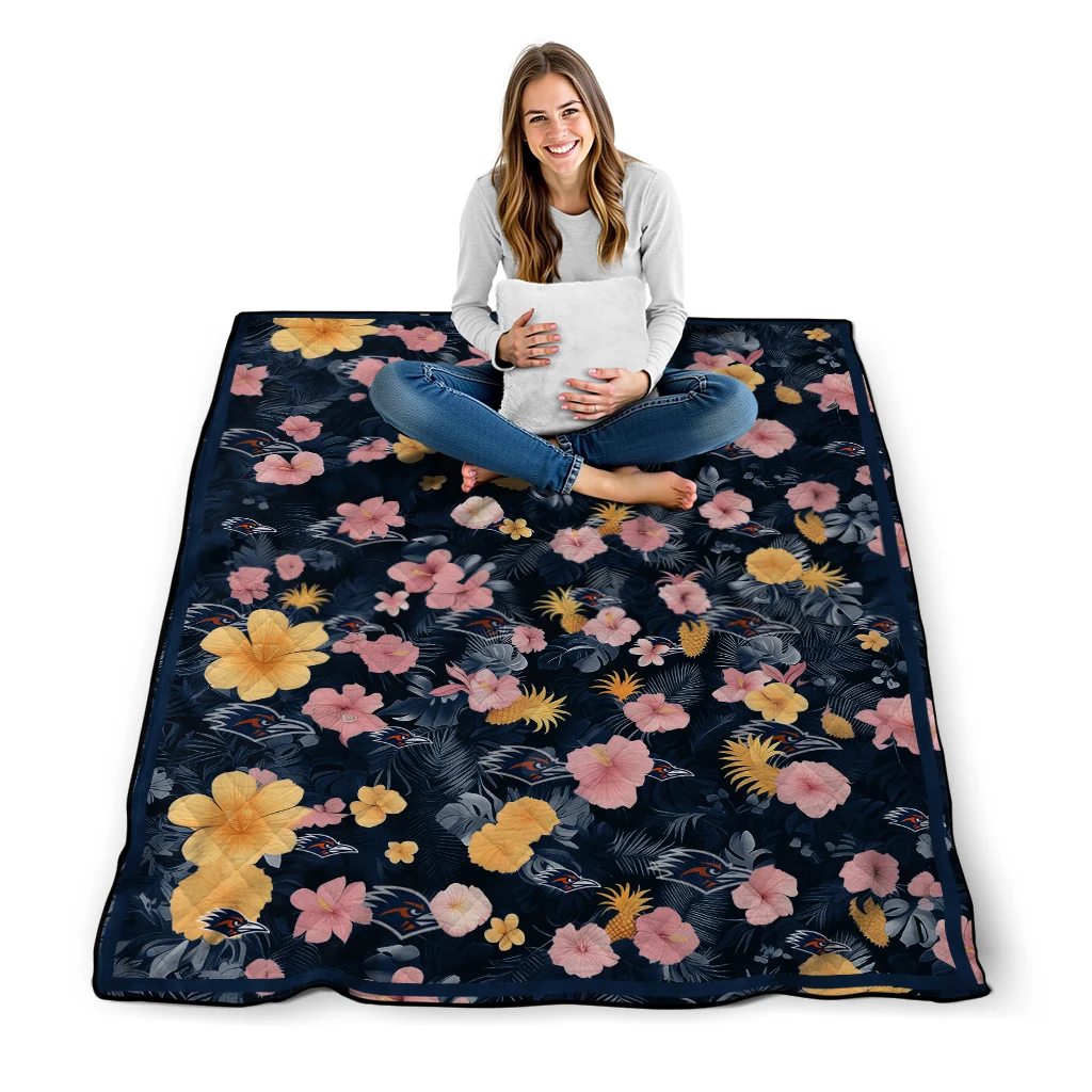 Wrap yourself in warmth and pride with the UTSA Roadrunners Hibiscus Foliage Orange Quilt Blanket from the UTSA Roadrunners Blankets collection at Yes That Blanket. Made from 100% premium quilting-weight polyester blended with a touch of microfiber, this quilt offers a smooth, soft finish you’ll love. Choose between two quilting styles—Stipple or Diagonal—and enjoy the comfort of a cotton-filled layer inside that adds extra coziness for every season. The border is available in classic black or white, giving your design a clean, timeless edge.