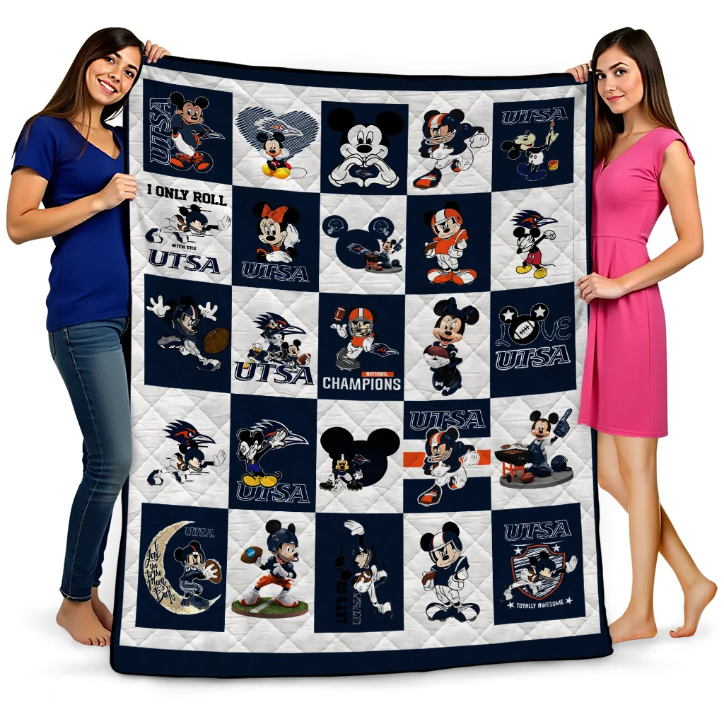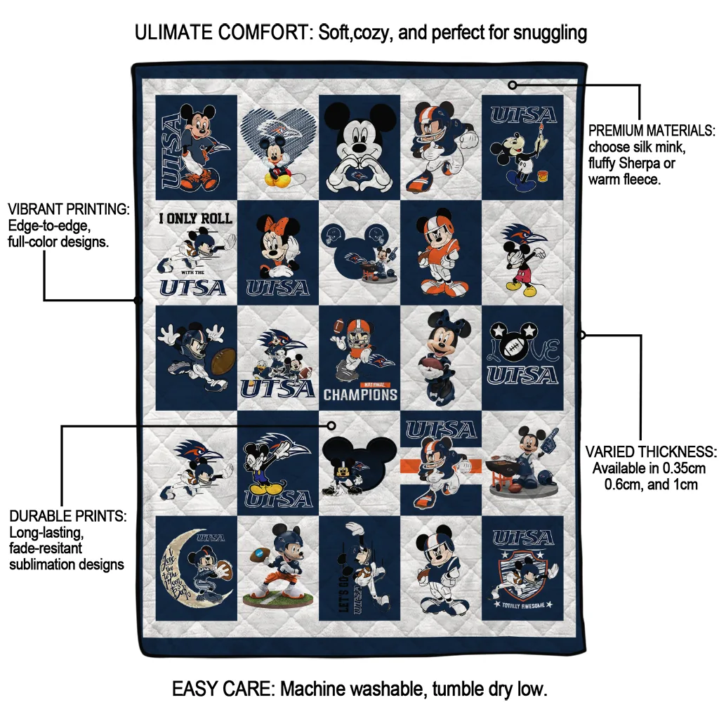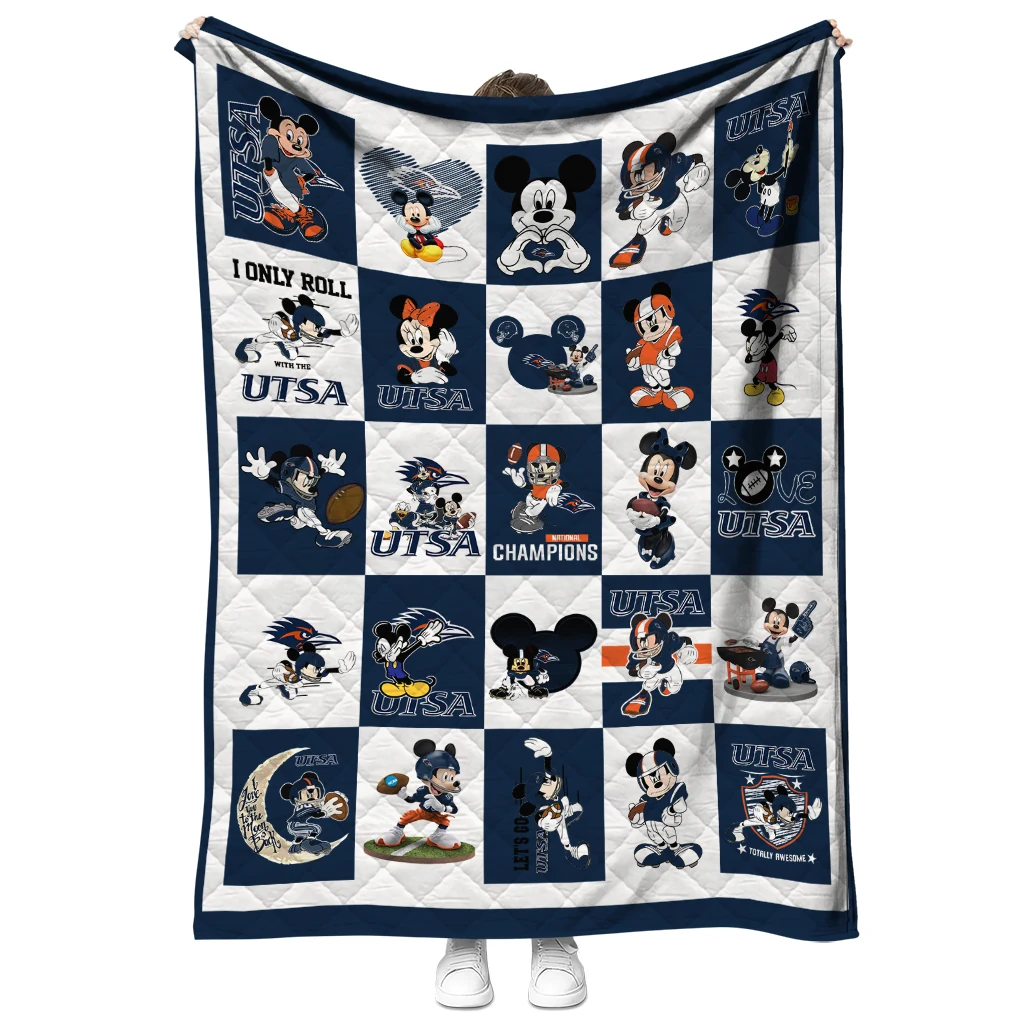 UTSA Roadrunners Mickey Mouse Motif Orange White Quilt Blanket