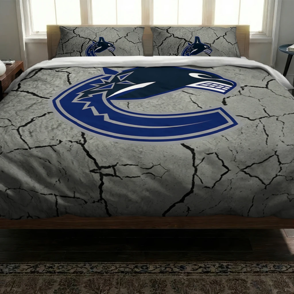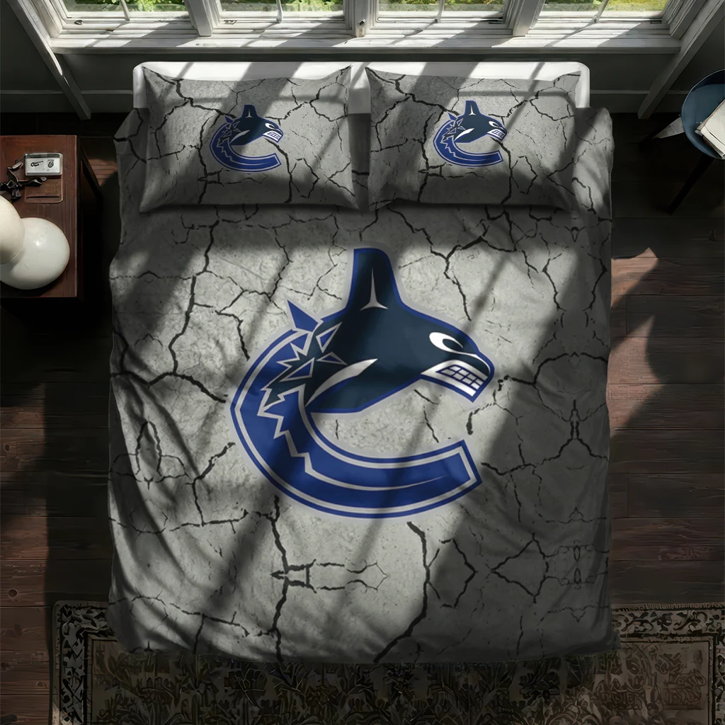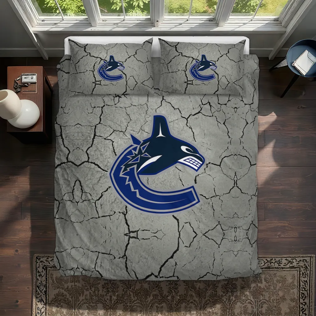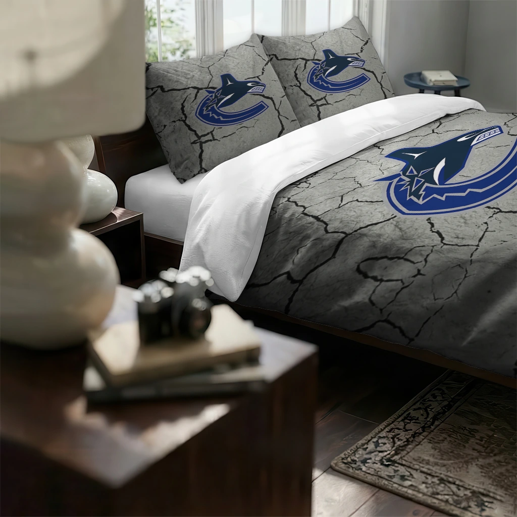 Vancouver Canucks Bedding Set – Cracked Texture Gray Blue