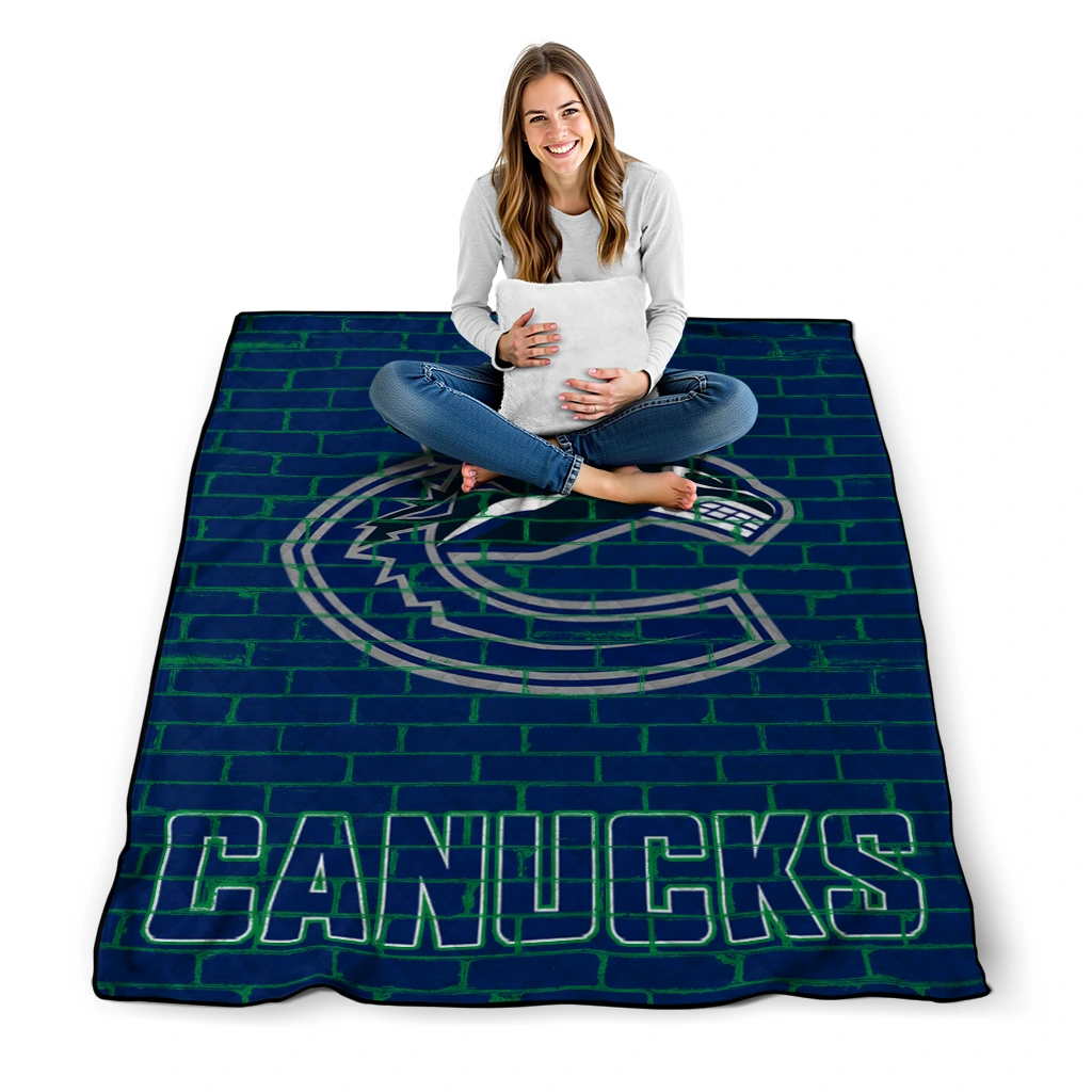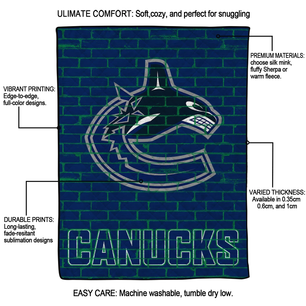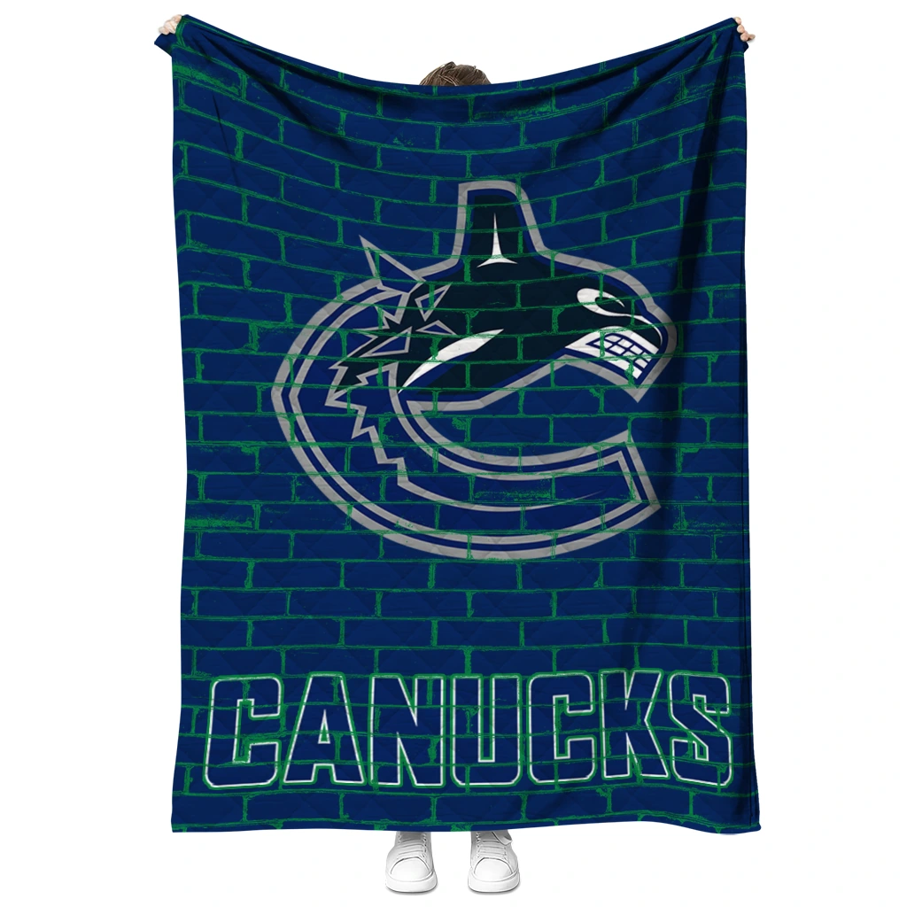 Vancouver Canucks Brick Grid Blue Quilt Blanket