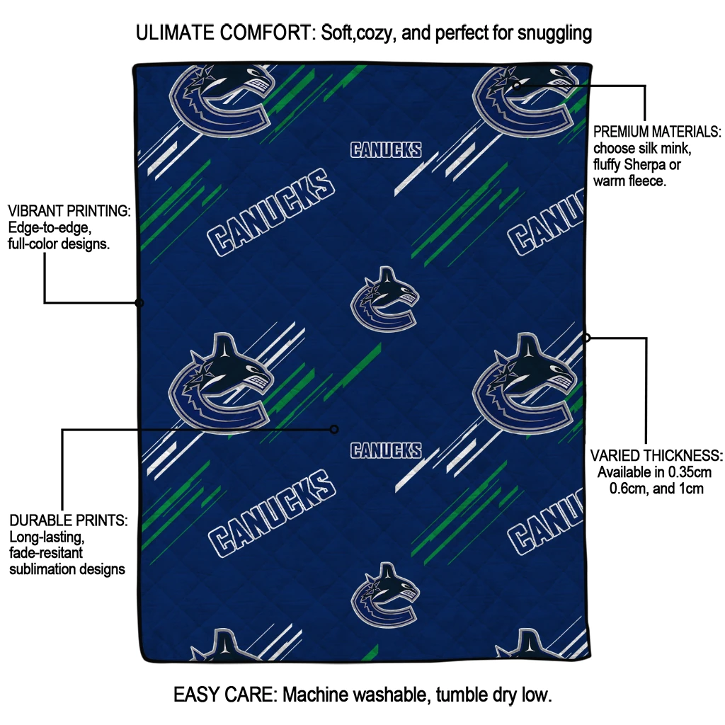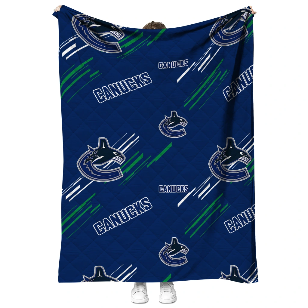 Vancouver Canucks Sketch Lines Blue Quilt Blanket