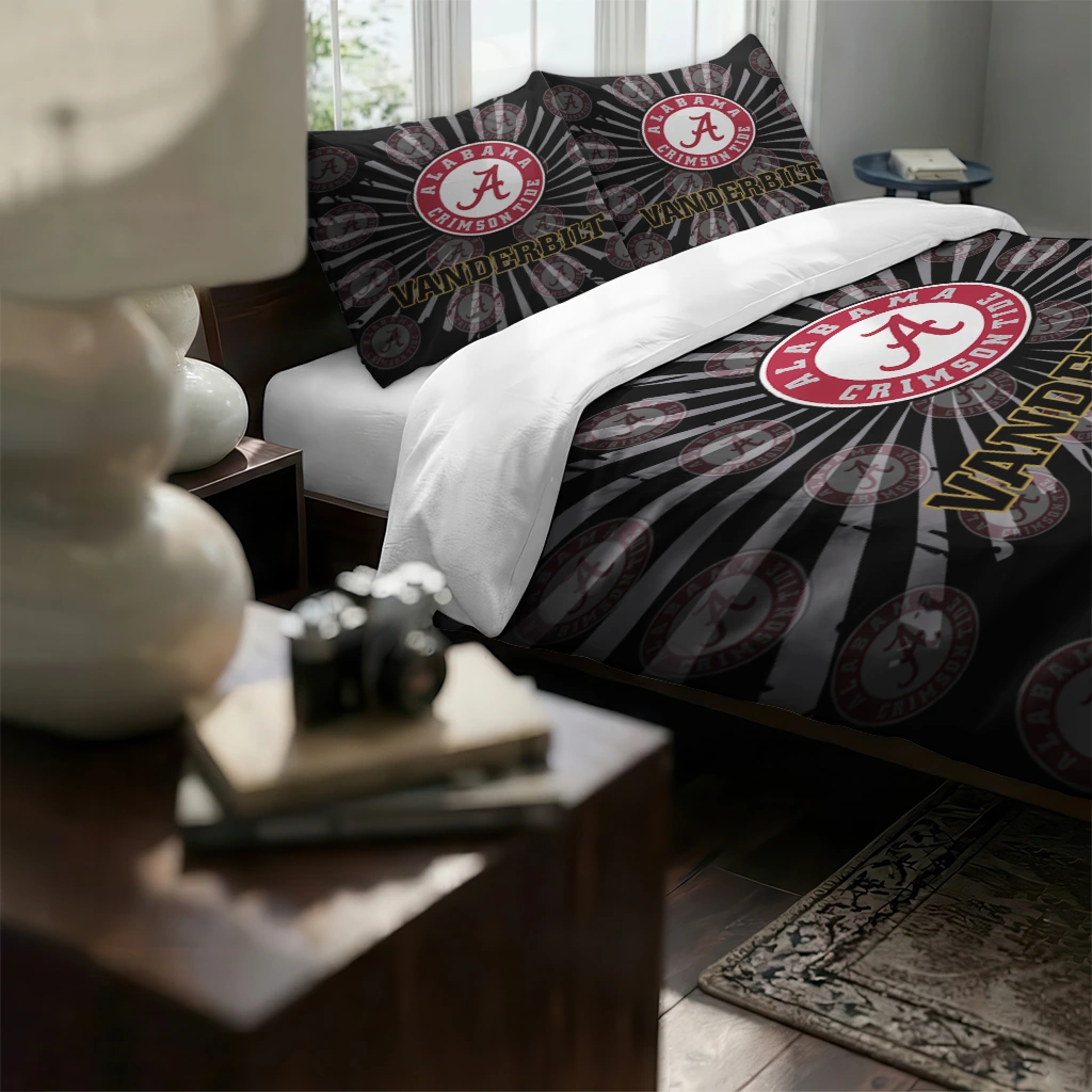 Vanderbilt Commodores Bedding Set – Sunburst Splatter Black Gray