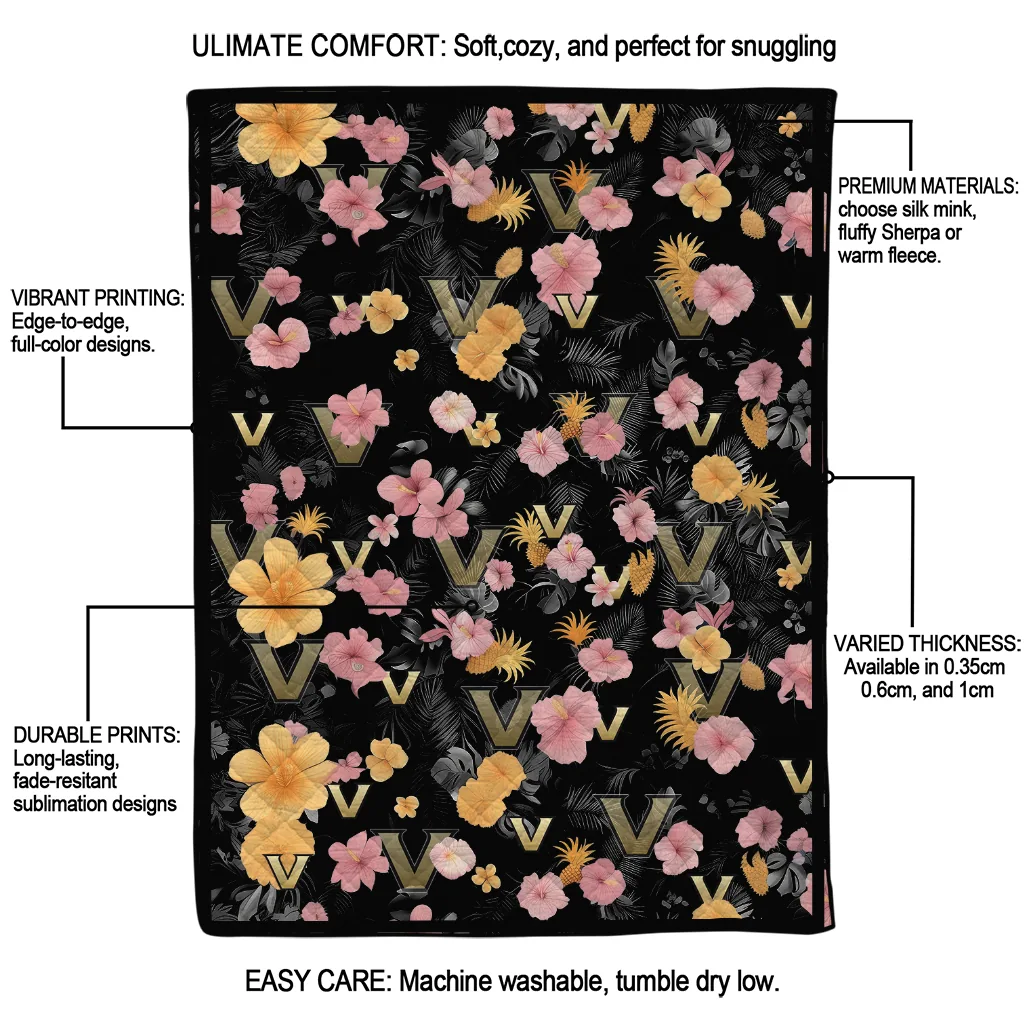 Wrap yourself in warmth and pride with the Vanderbilt Commodores Hibiscus Foliage Black Quilt Blanket from the Vanderbilt Commodores Blankets collection at Yes That Blanket. Made from 100% premium quilting-weight polyester blended with a touch of microfiber, this quilt offers a smooth, soft finish you’ll love. Choose between two quilting styles—Stipple or Diagonal—and enjoy the comfort of a cotton-filled layer inside that adds extra coziness for every season. The border is available in classic black or white, giving your design a clean, timeless edge.