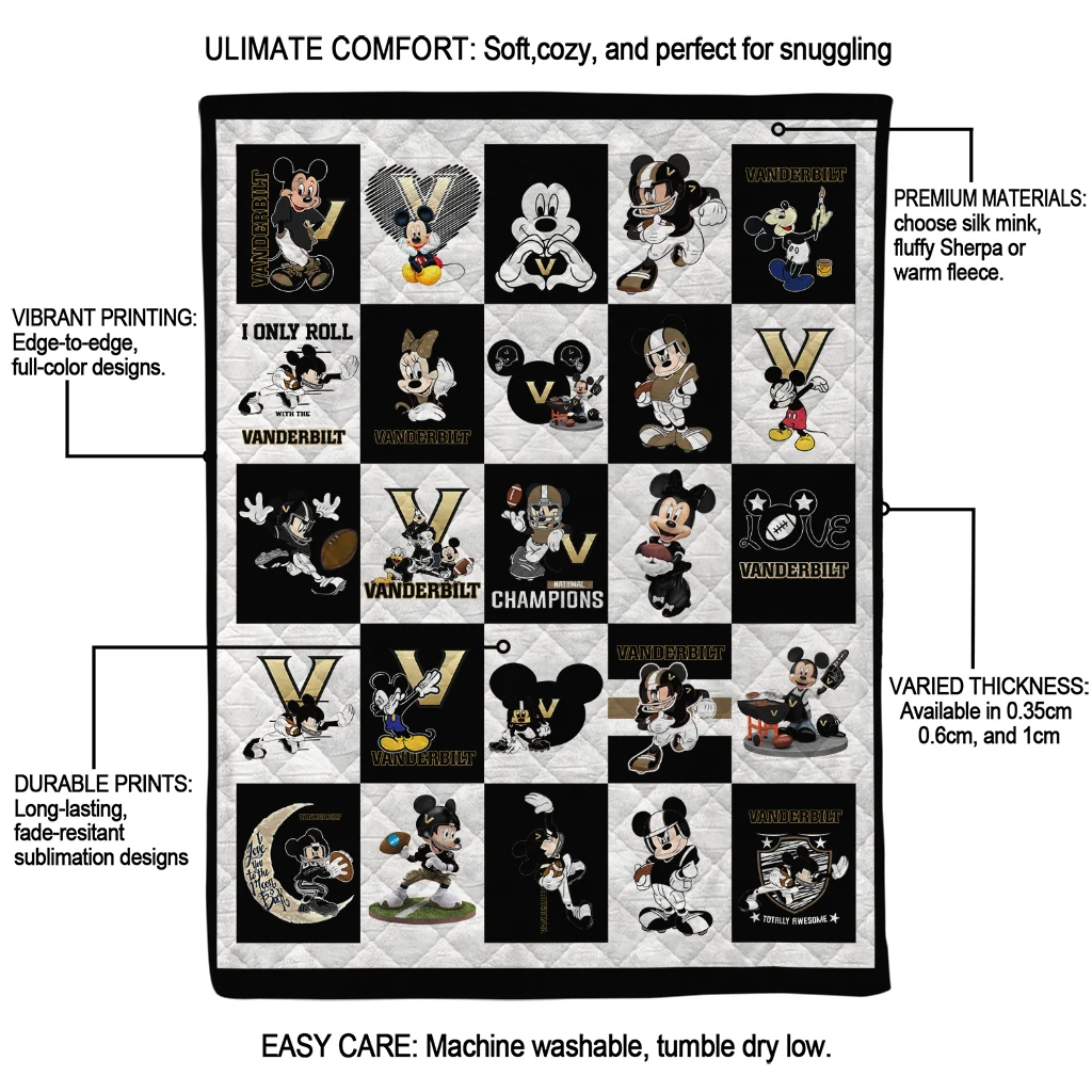 Wrap yourself in warmth and pride with the Vanderbilt Commodores Mickey Mouse Motif Black White Quilt Blanket from the Vanderbilt Commodores Blankets collection at Yes That Blanket. Made from 100% premium quilting-weight polyester blended with a touch of microfiber, this quilt offers a smooth, soft finish you’ll love. Choose between two quilting styles—Stipple or Diagonal—and enjoy the comfort of a cotton-filled layer inside that adds extra coziness for every season. The border is available in classic black or white, giving your design a clean, timeless edge.