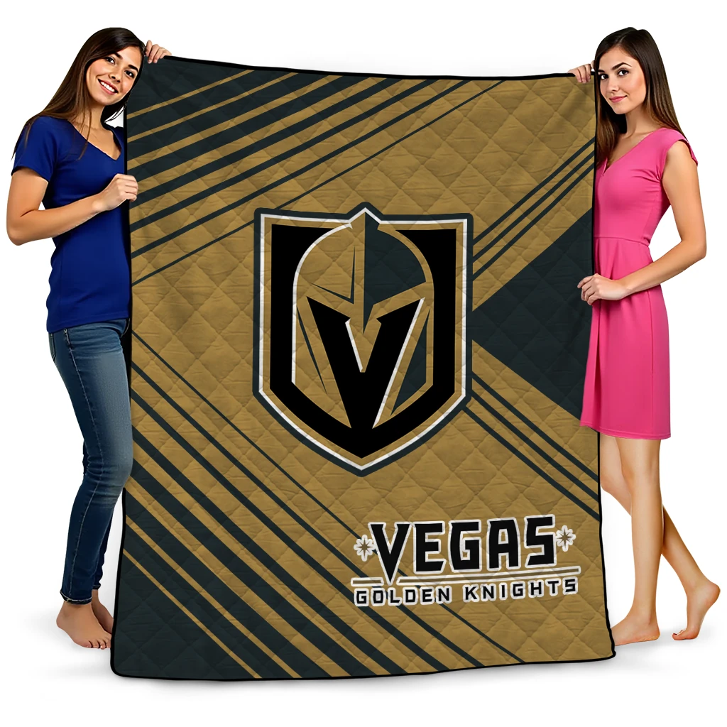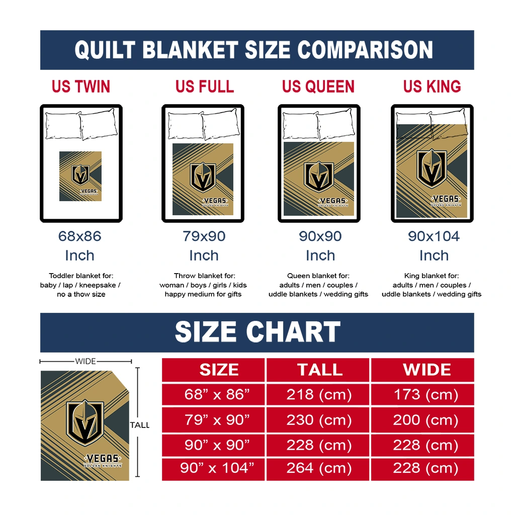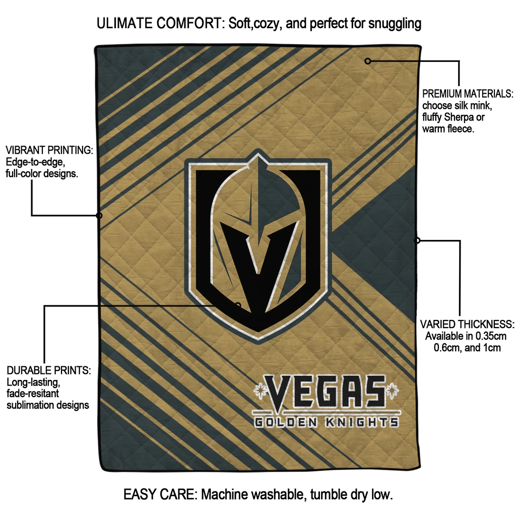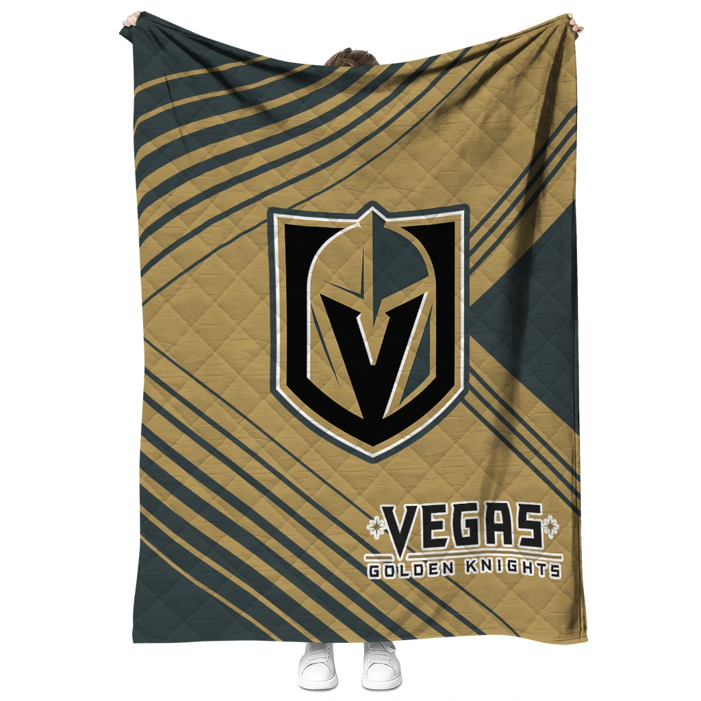 Wrap yourself in warmth and pride with the Vegas Golden Knights Arrow Layers Tan Quilt Blanket from the Vegas Golden Knights Blankets collection at Yes That Blanket. Made from 100% premium quilting-weight polyester blended with a touch of microfiber, this quilt offers a smooth, soft finish you’ll love. Choose between two quilting styles—Stipple or Diagonal—and enjoy the comfort of a cotton-filled layer inside that adds extra coziness for every season. The border is available in classic black or white, giving your design a clean, timeless edge.