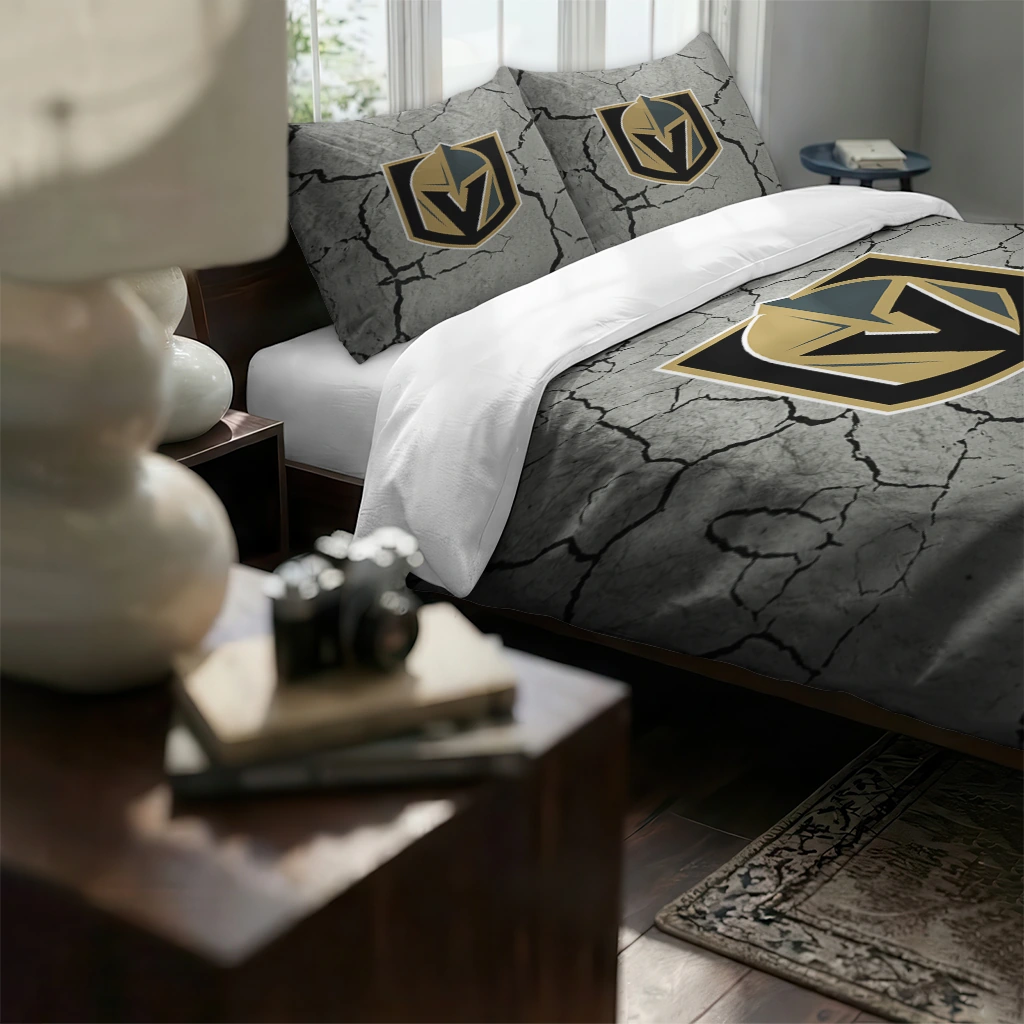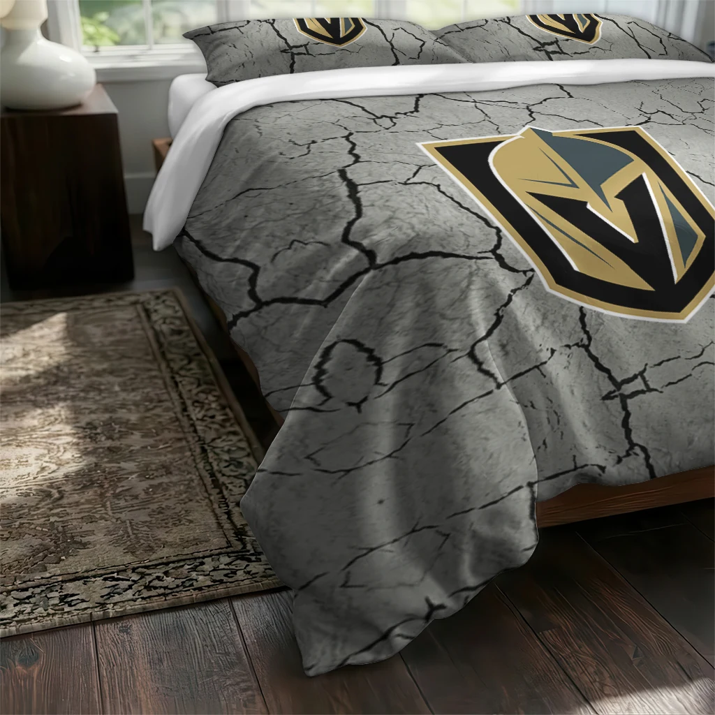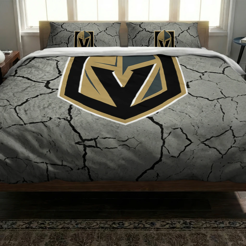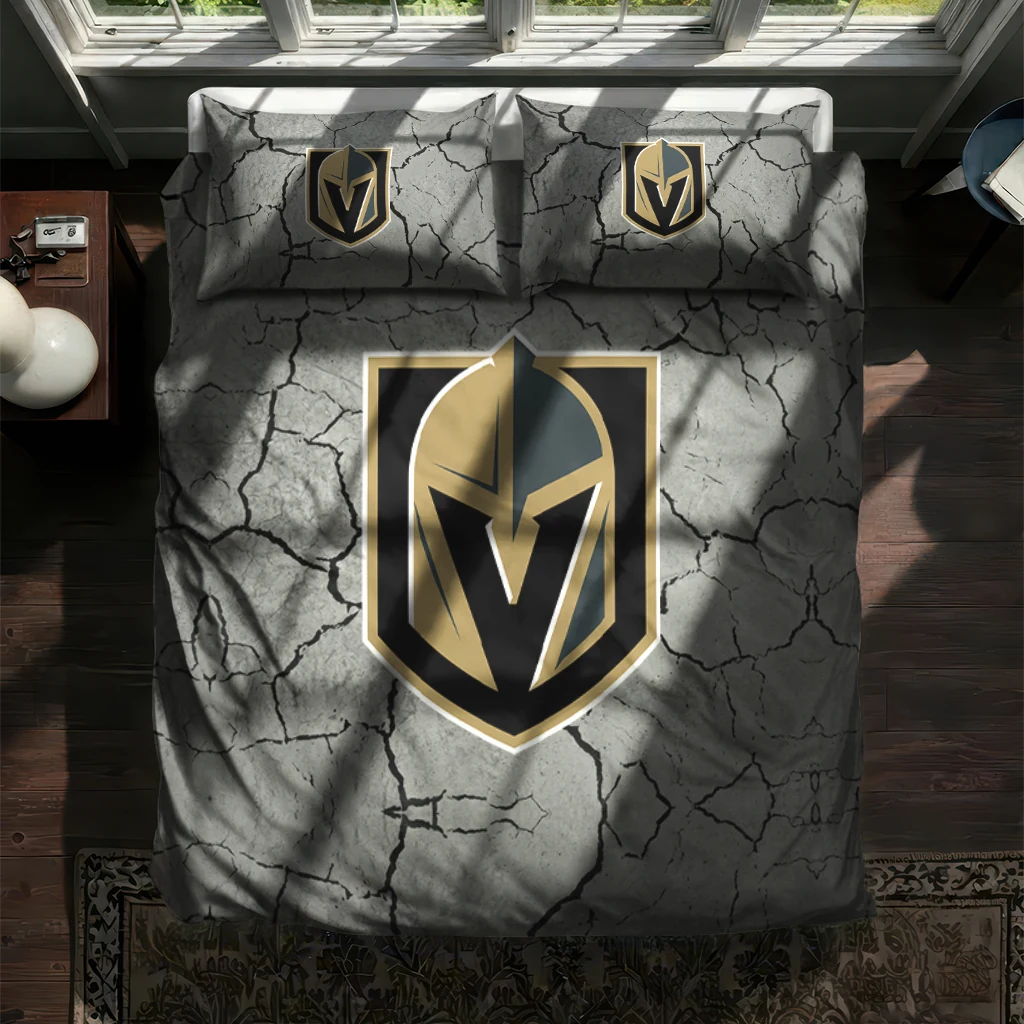 Vegas Golden Knights Bedding Set – Cracked Texture Gray Black