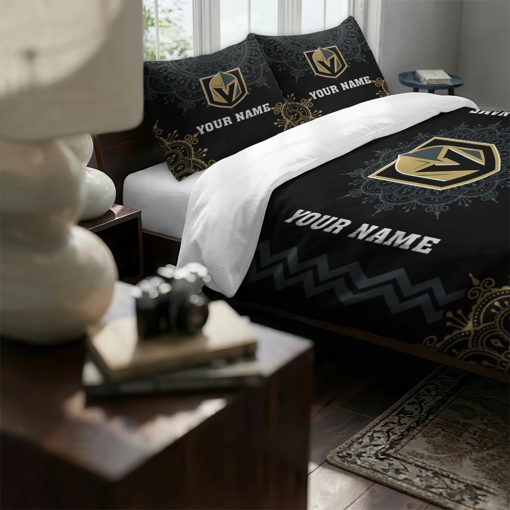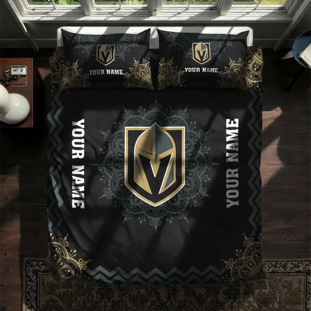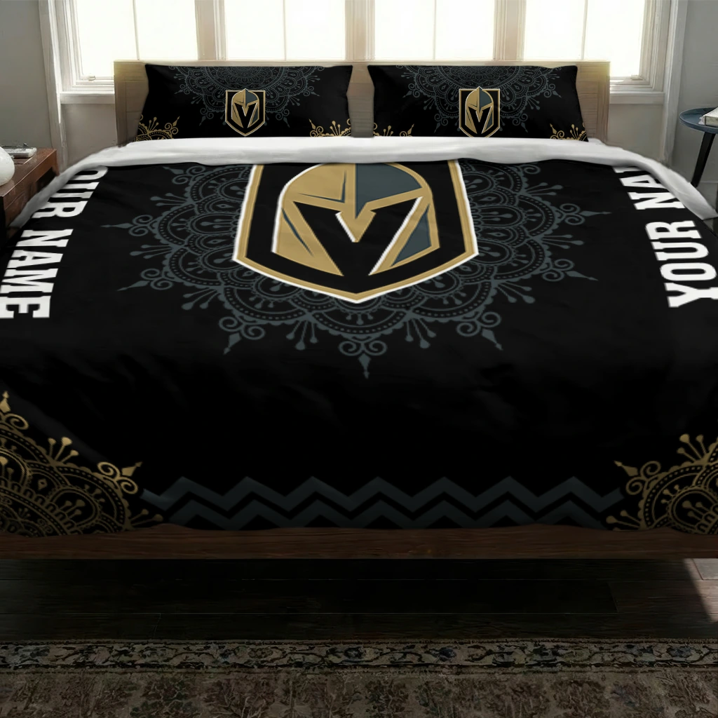 Vegas Golden Knights Bedding Set – Custom Mandala Lacework Black Gold