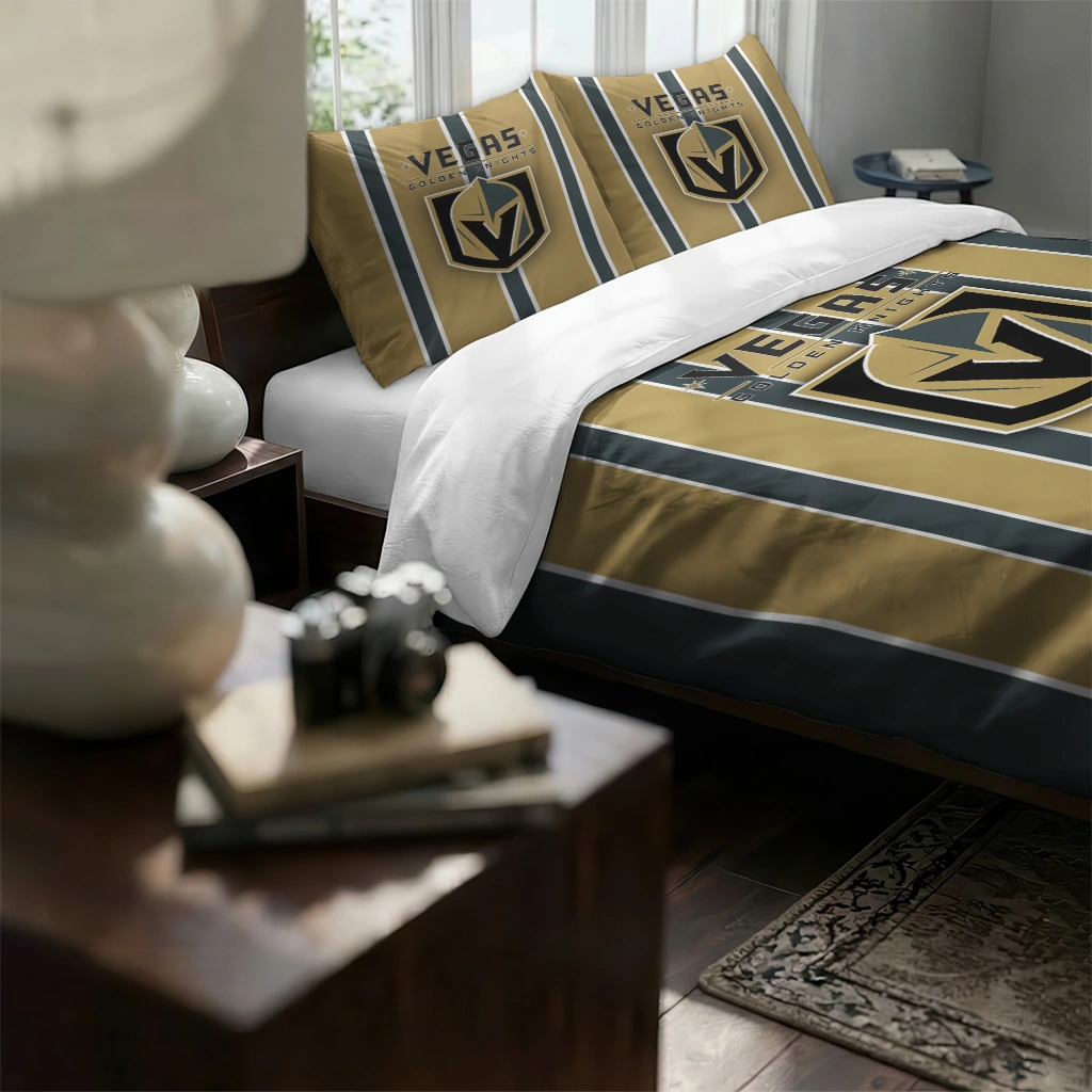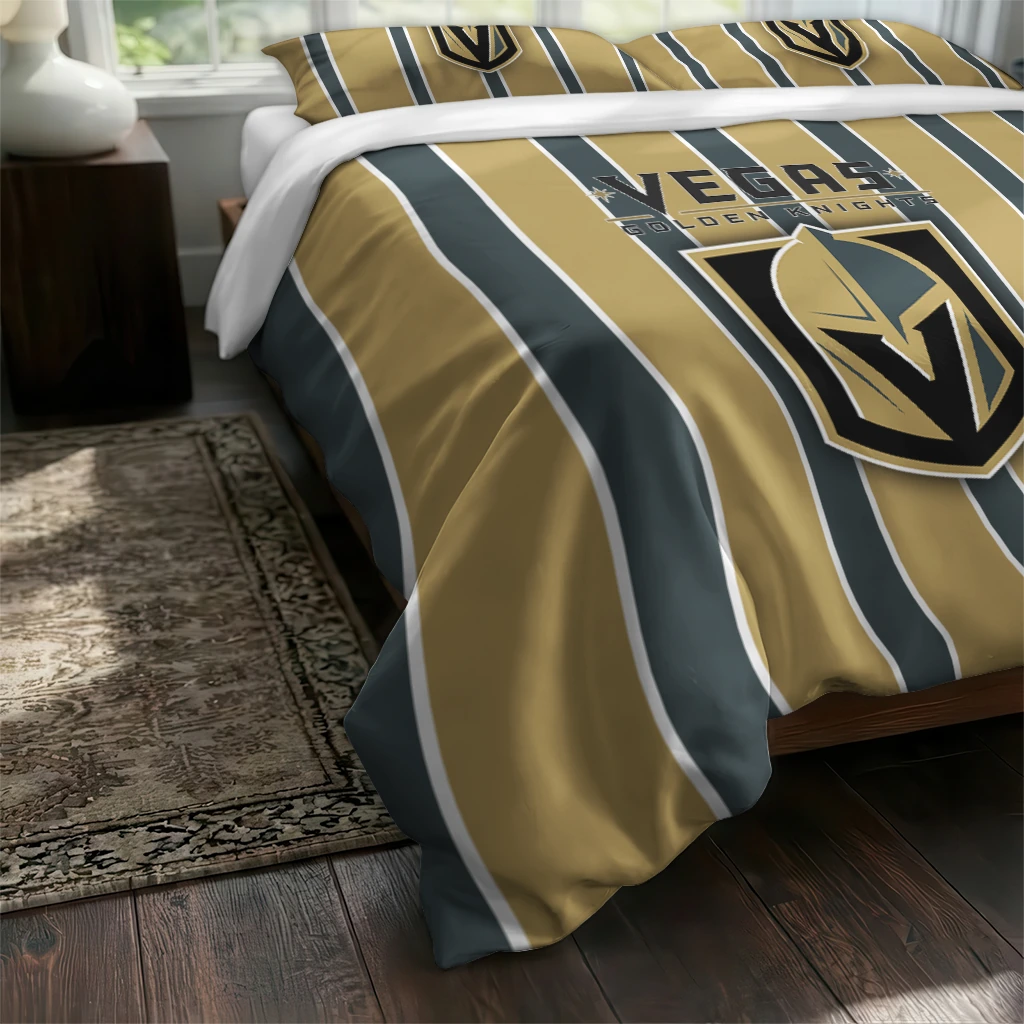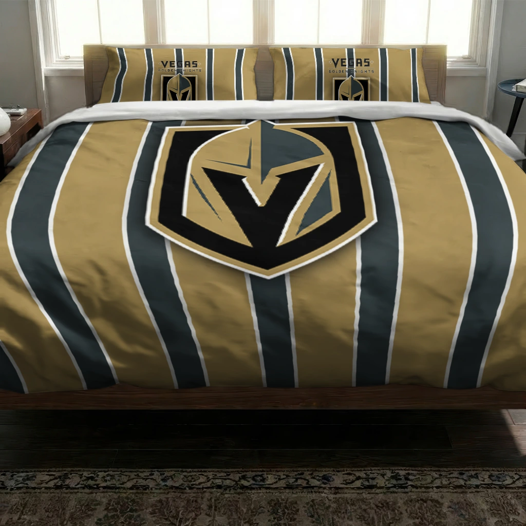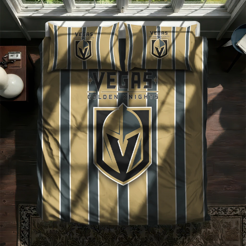 Vegas Golden Knights Bedding Set – Stripe Style Gold Black