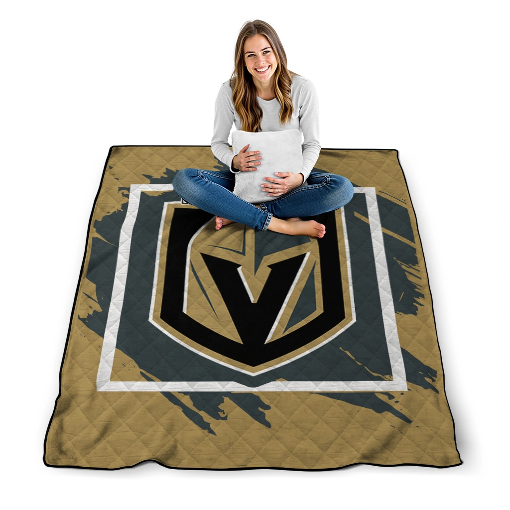Wrap yourself in warmth and pride with the Vegas Golden Knights Block Border Tan Quilt Blanket from the Vegas Golden Knights Blankets collection at Yes That Blanket. Made from 100% premium quilting-weight polyester blended with a touch of microfiber, this quilt offers a smooth, soft finish you’ll love. Choose between two quilting styles—Stipple or Diagonal—and enjoy the comfort of a cotton-filled layer inside that adds extra coziness for every season. The border is available in classic black or white, giving your design a clean, timeless edge.